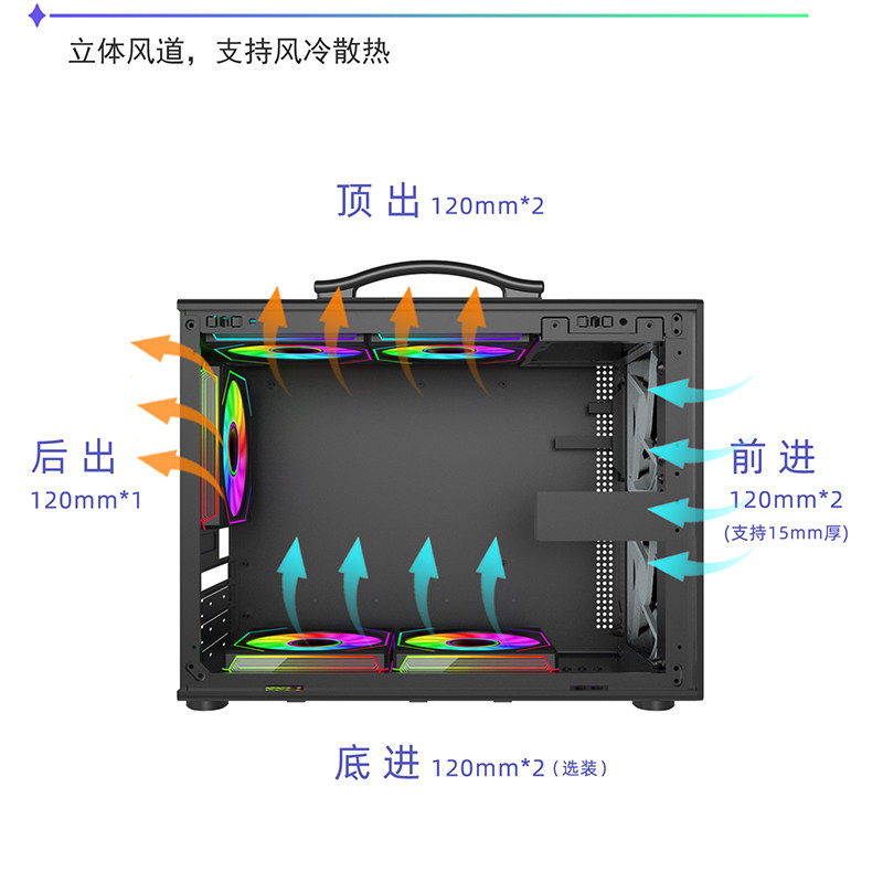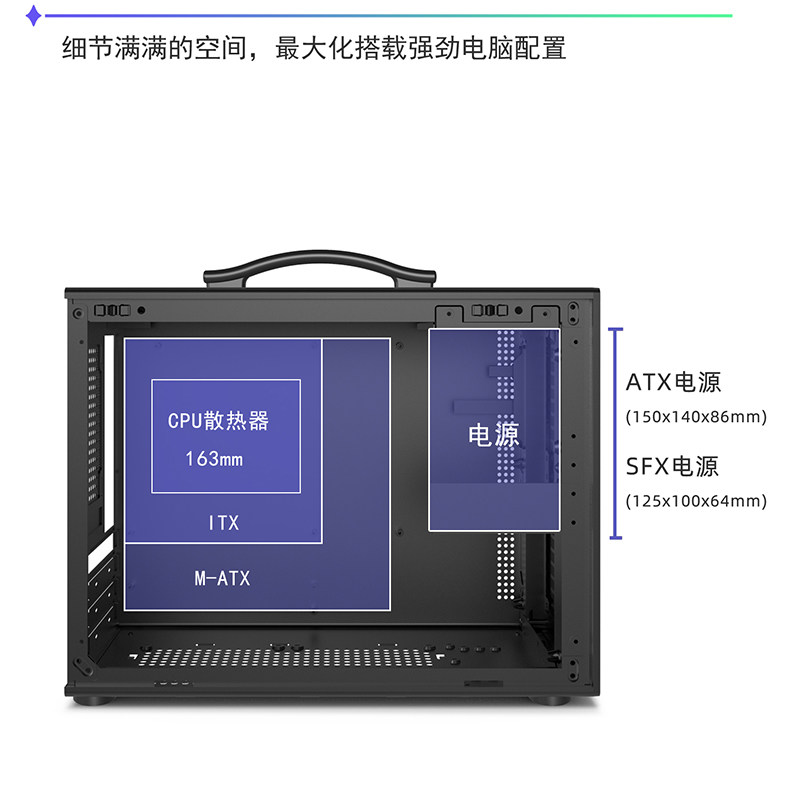 未知玩家M1手提便携式机箱台式机迷你玻璃侧透游戏MATX电脑小机箱