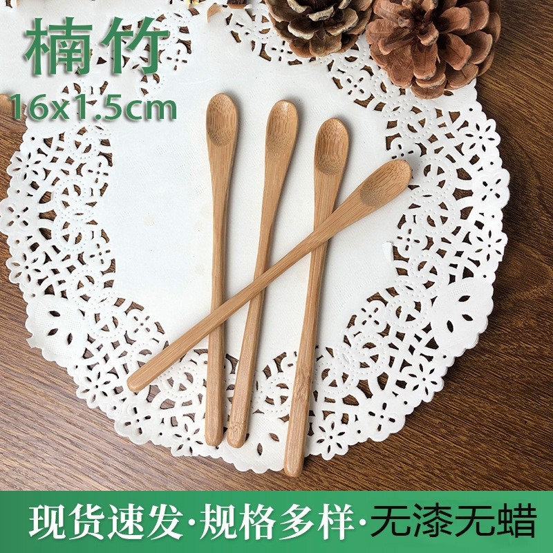 美学日式 咖啡牛奶搅拌勺竹制长柄竹勺蜂蜜搅拌棒木勺甜品调羹匙