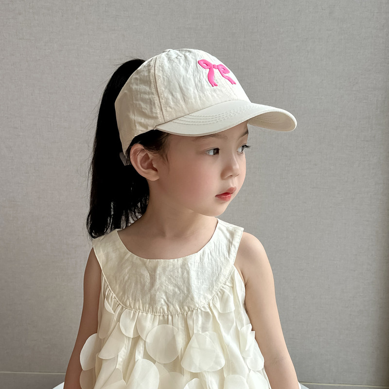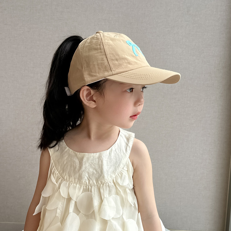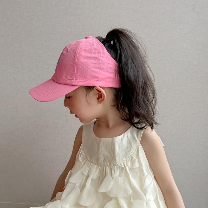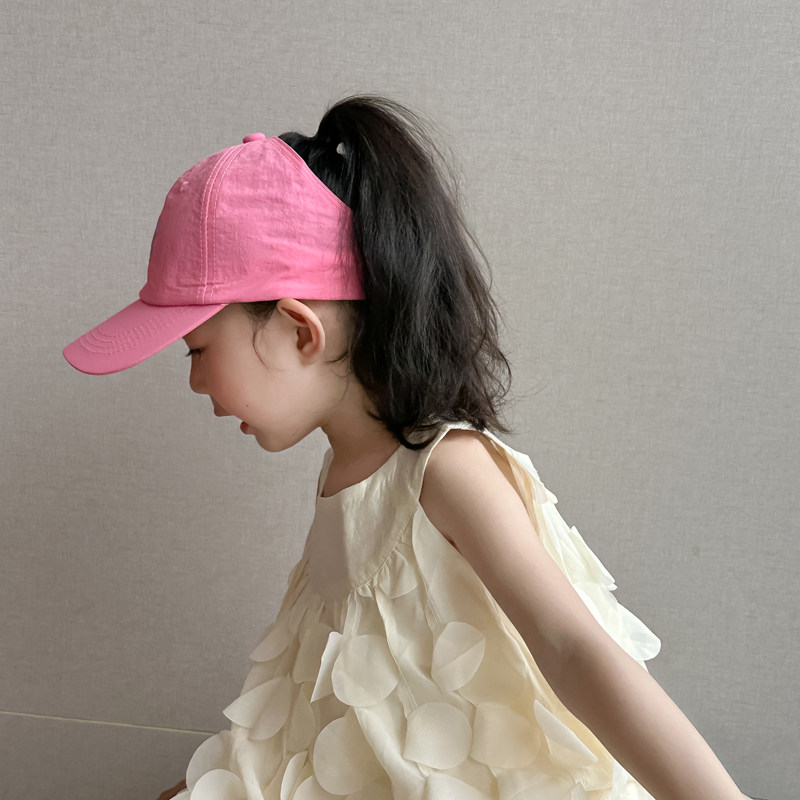 儿童帽子女童鸭舌帽2025新款速干空顶帽女孩可扎马尾防晒帽遮阳帽
