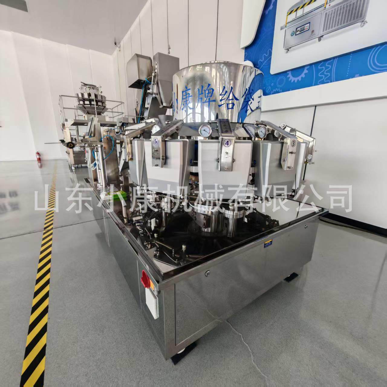芒果干自动给袋真空包装机山东小康160多头称给袋真空封口机