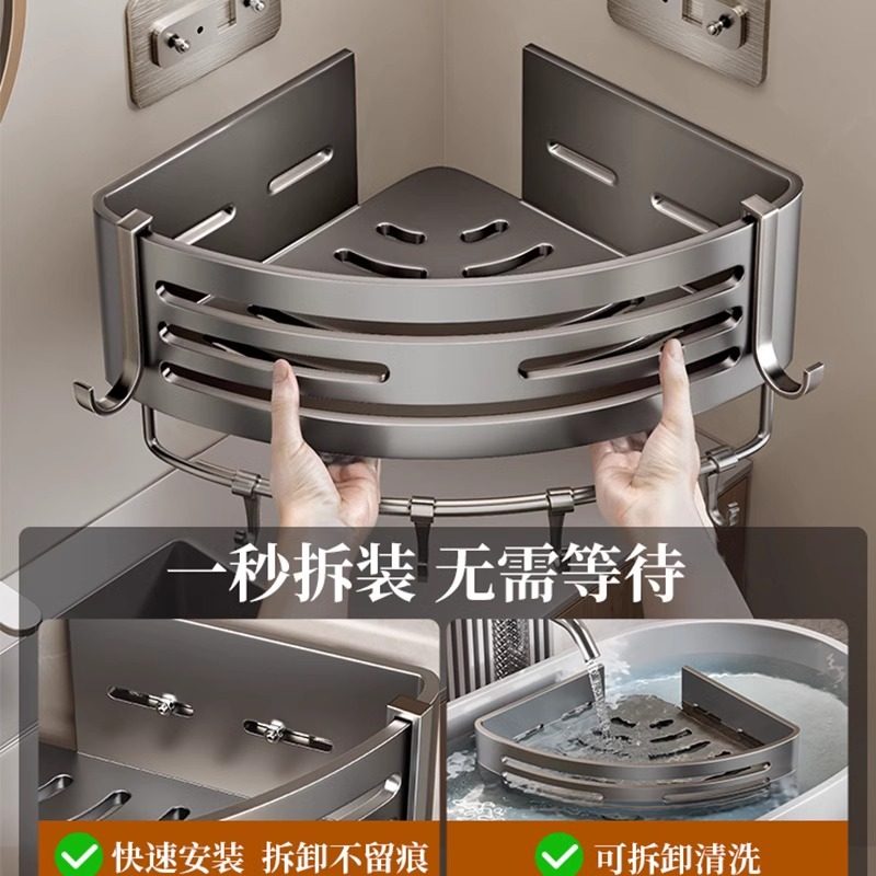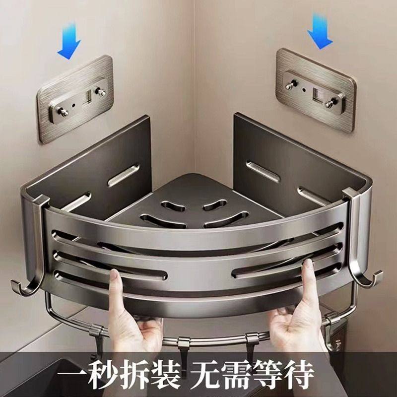 卫生间浴室三角置物架厕所免打孔加厚太空铝洗澡间沐浴露收纳架子