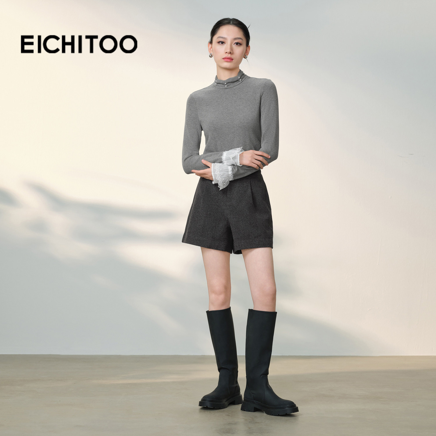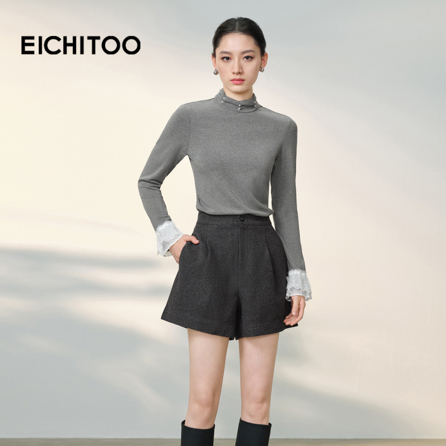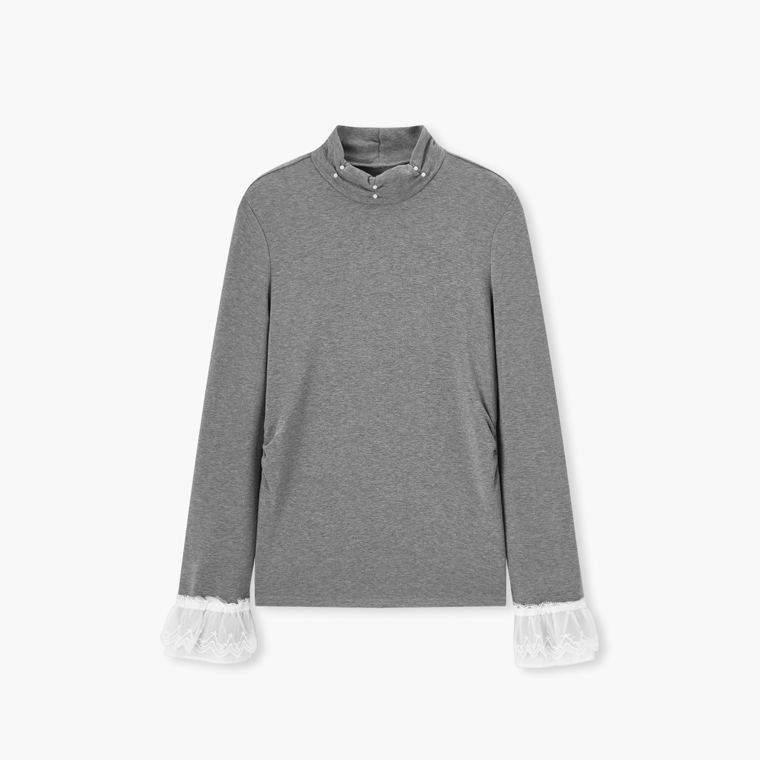 爱居兔半高领打底针织衫女2025年冬季新款设计感蕾丝袖口内搭上衣