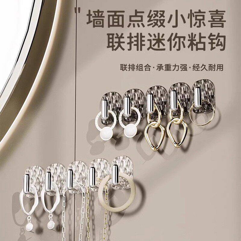 迷你无痕连排挂钩化妆室镜柜门后首饰黏贴壁挂黏钩免打孔收纳承重
