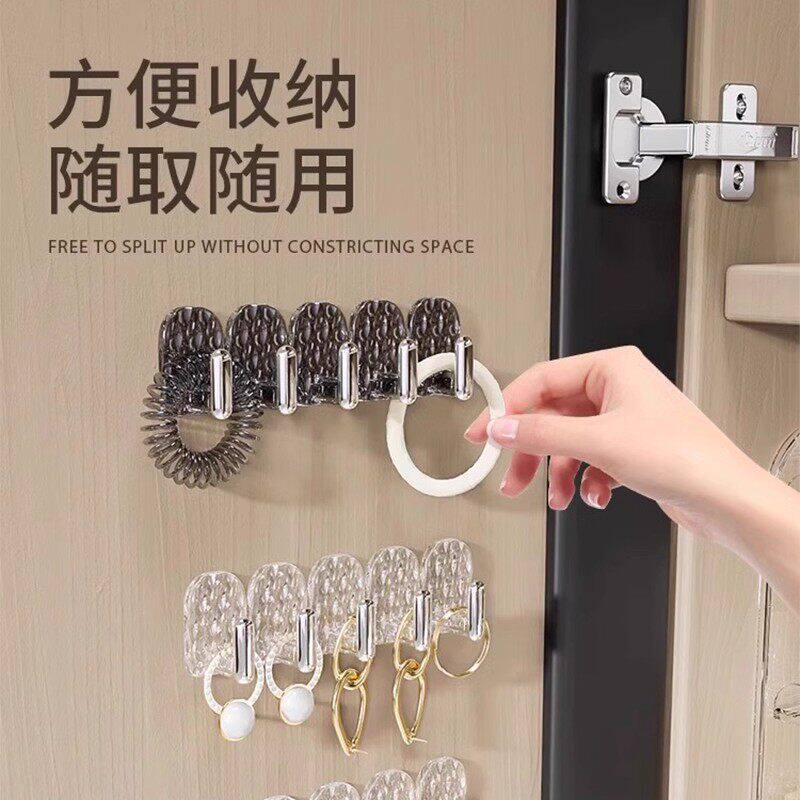 透明连排挂钩六连挂强力粘胶不掉落收纳壁挂无痕免打孔门后粘钩