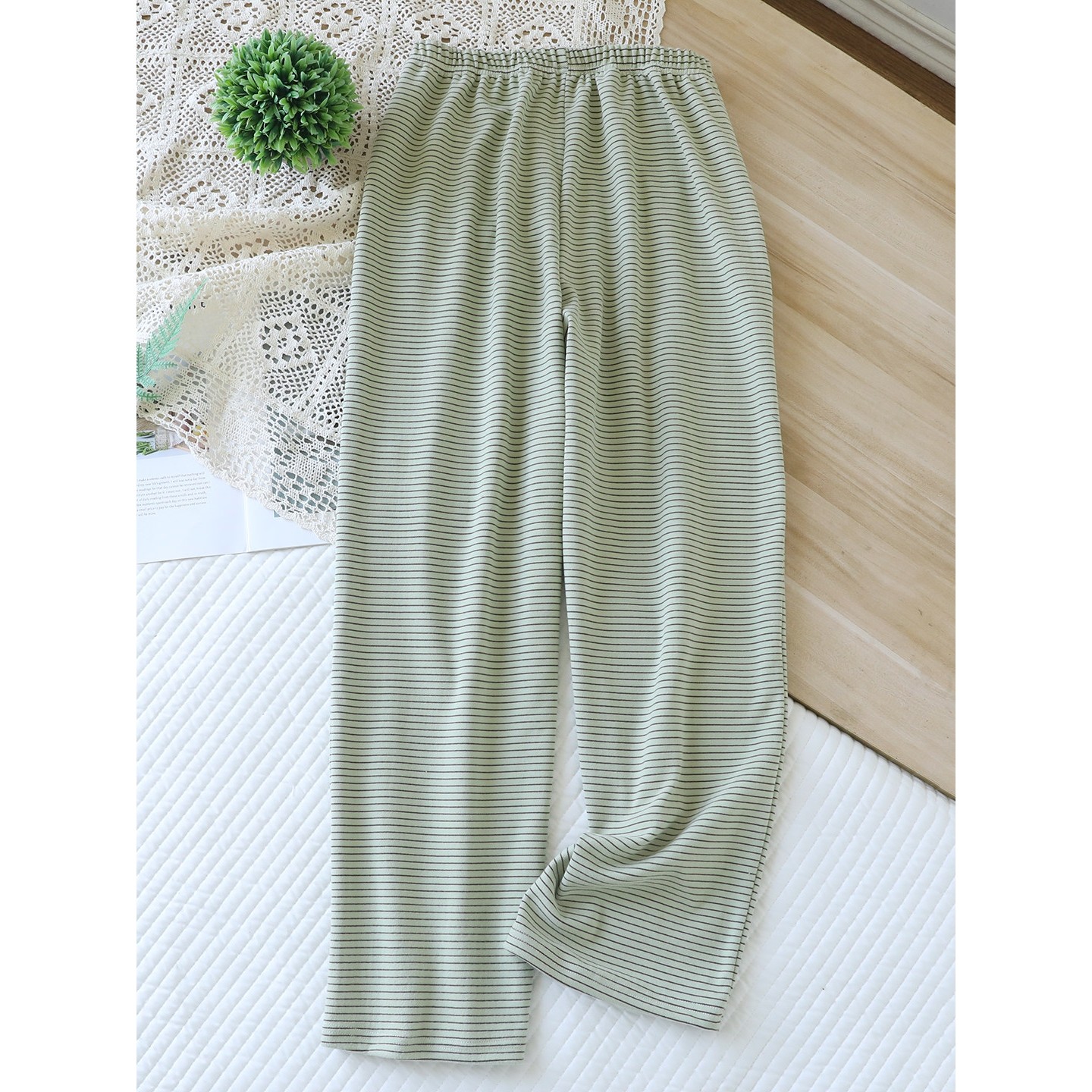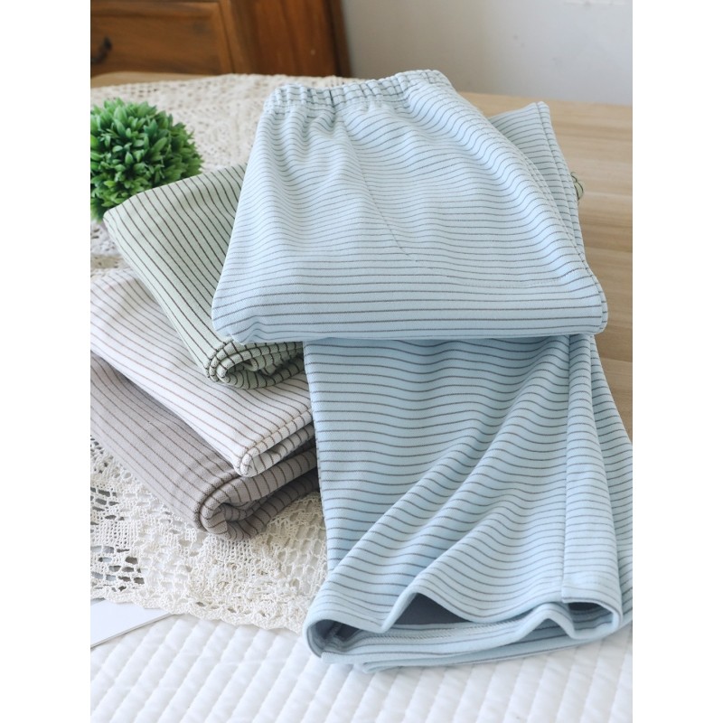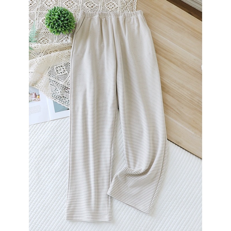 百分百纯棉女休闲家居睡裤宽松大码高腰春夏秋薄款长裤直筒空调裤