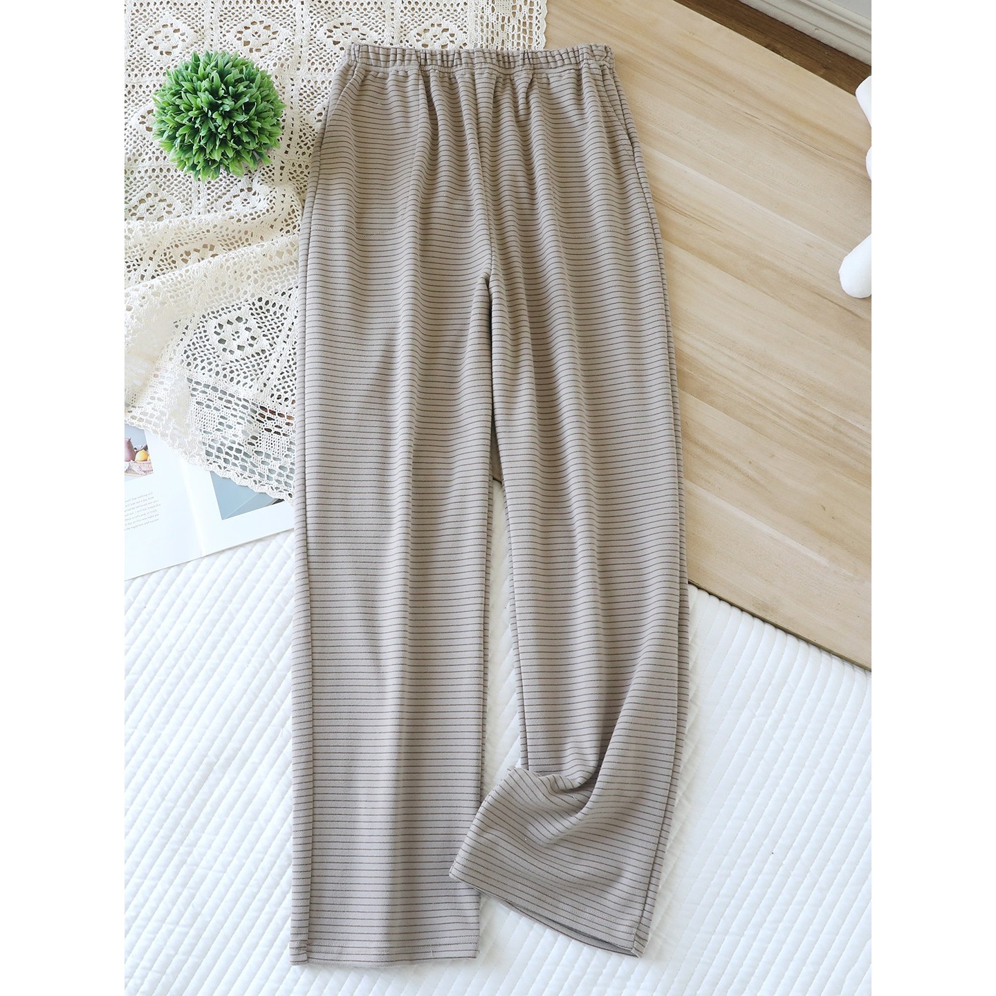 红豆秋冬睡裤女长裤德绒保暖加厚带口袋外穿2025新款薄冬天直筒家