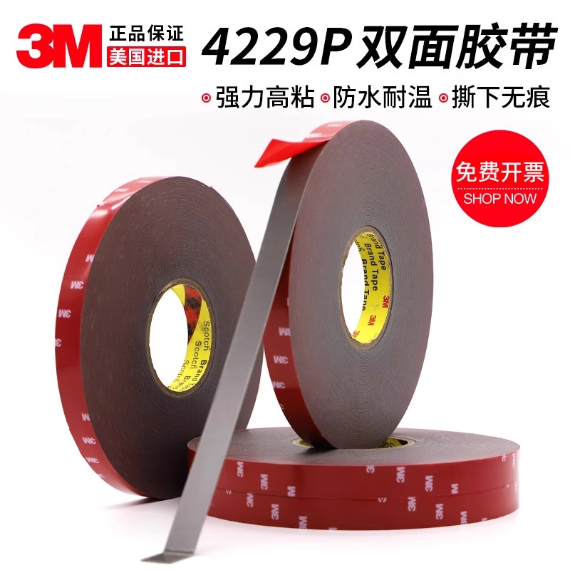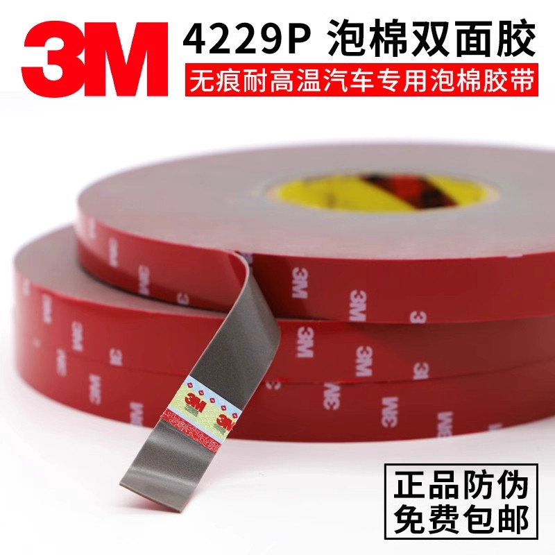 3M4229PVHB双面胶汽车专用防水高粘度耐高温无痕固定泡棉双面1mm