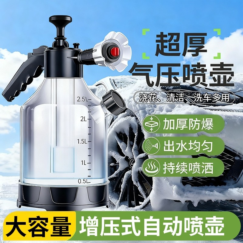 手动高压浇花洗车喷壶水壶园艺工具3L喷雾器沫壶清洁气压式大容量