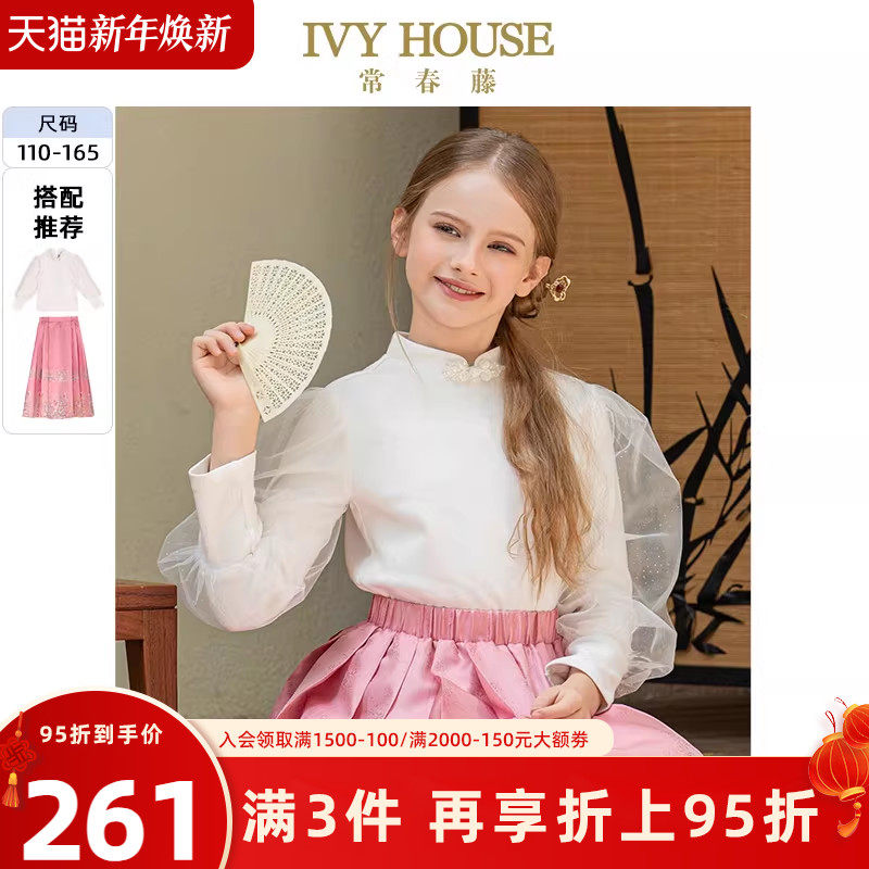 IVY HOUSE常春藤童装女童秋款 新中式旗袍领打底衫国风马面裙亲子