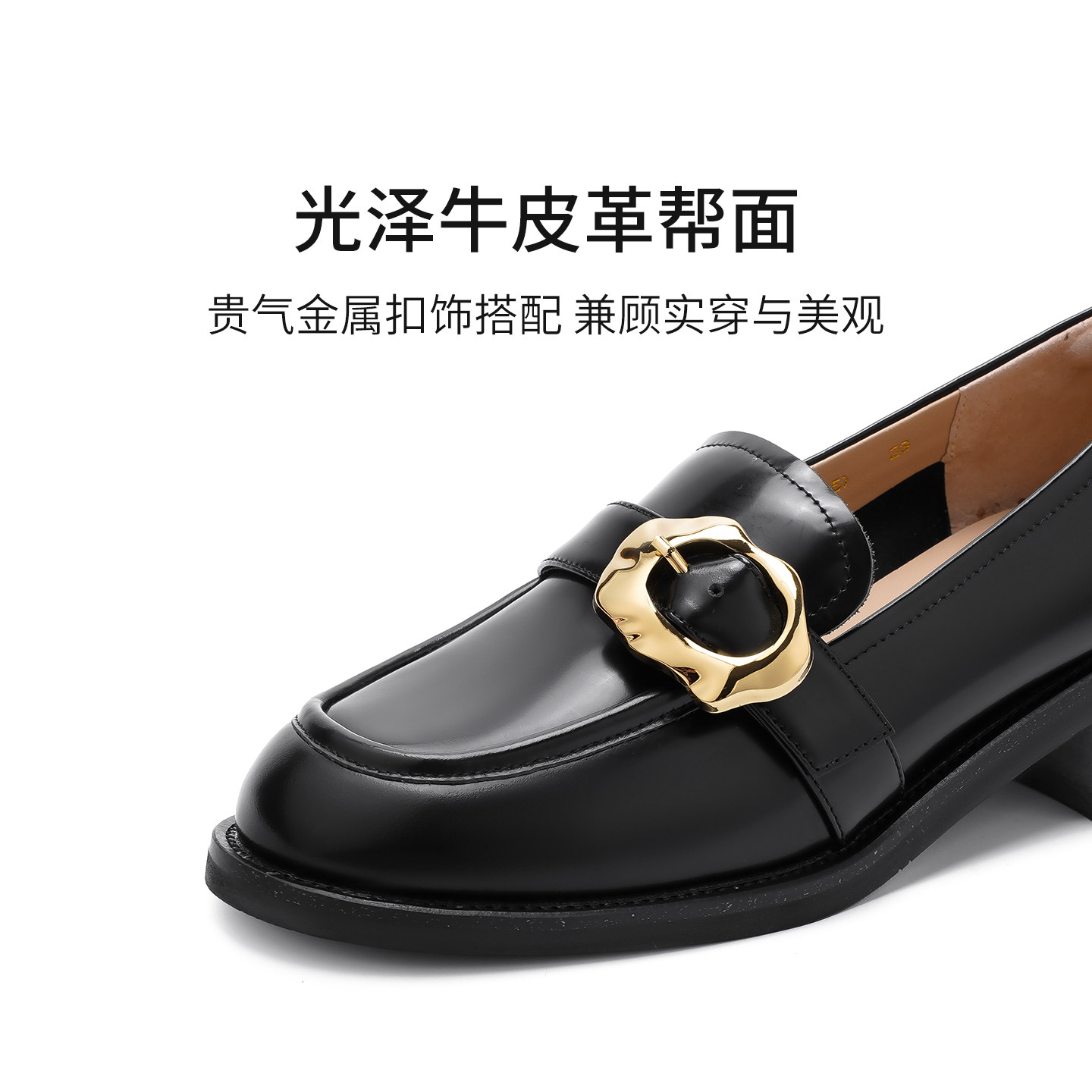 真皮~骄屿复古一脚蹬乐福鞋女厚底粗跟圆头单鞋百搭英伦风小皮鞋