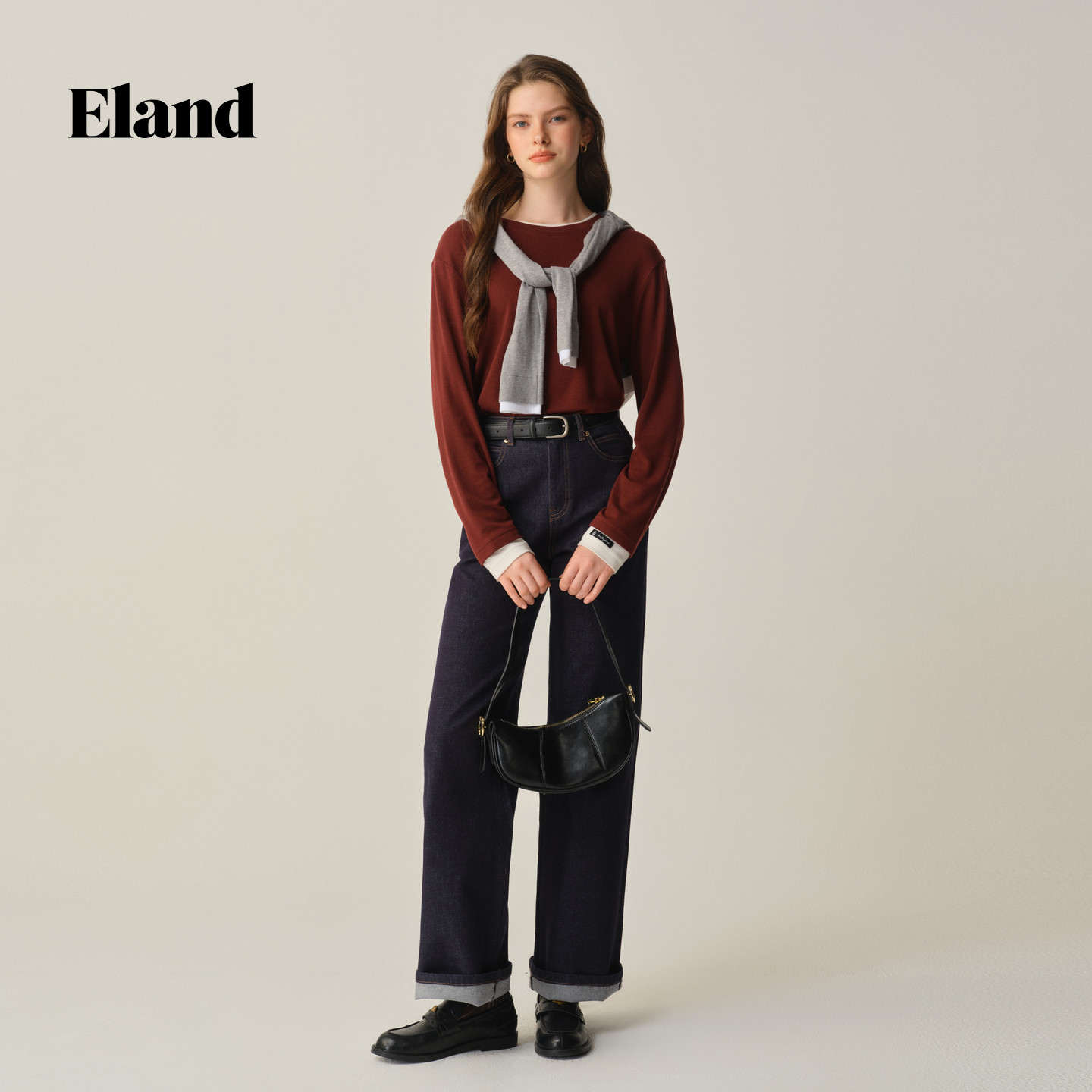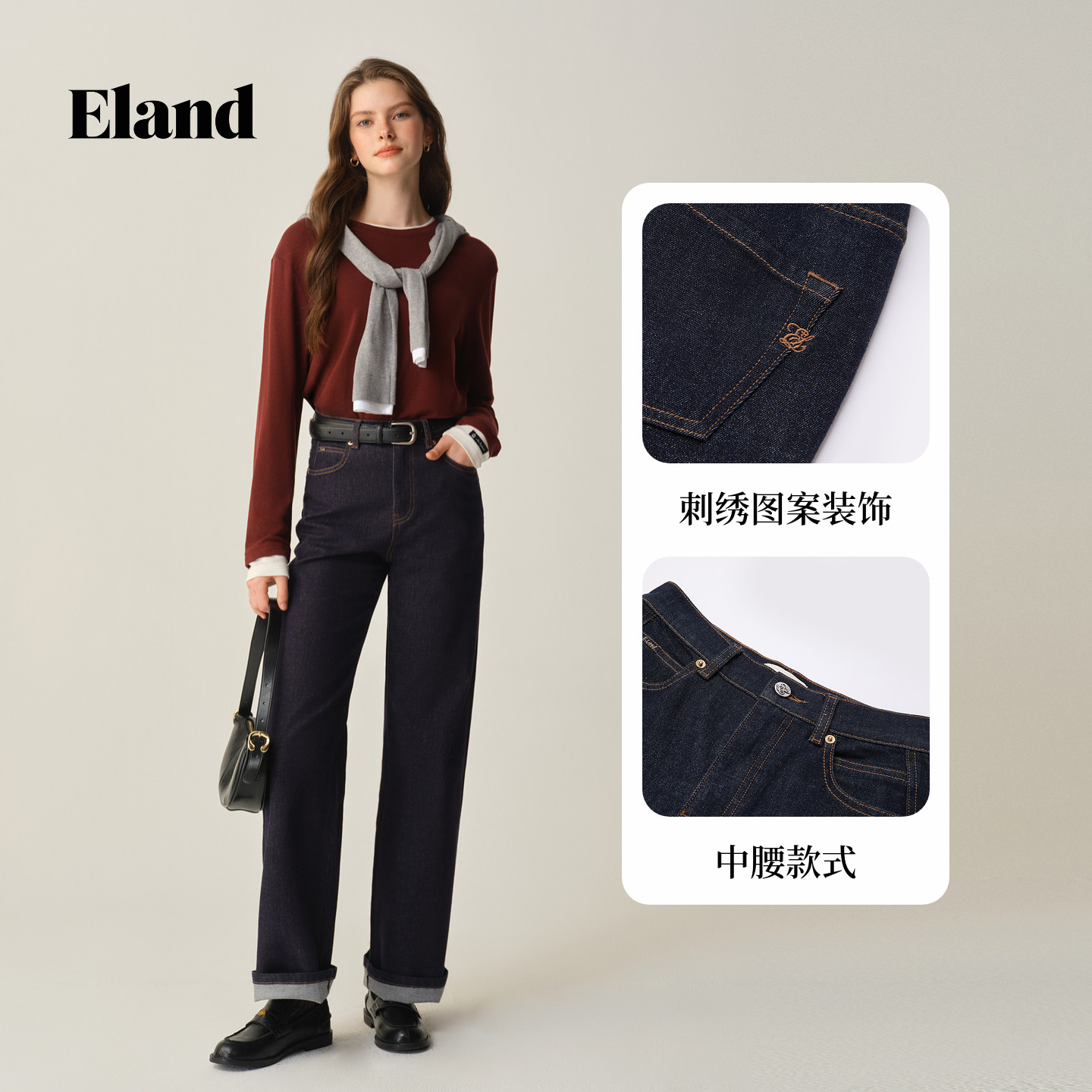 【活性染牛仔】Eland衣恋牛仔裤女中腰阔腿裤棉质长裤2025冬新款