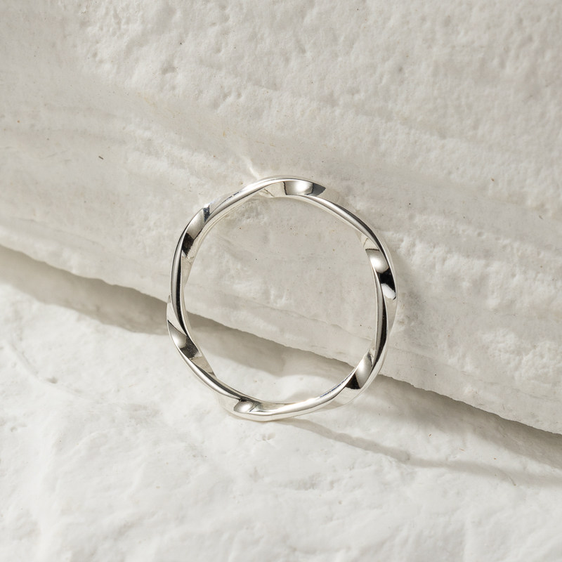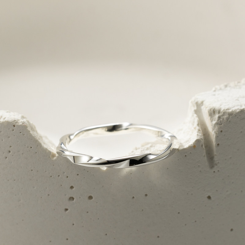 S925纯银六芒星莫比乌斯环戒指女 欧美简约通勤叠戴尾戒小指