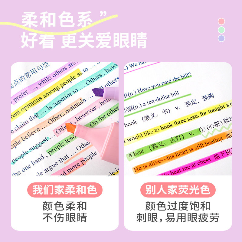 三年二班护眼荧光笔高颜值荧光标记笔学生用多色记号笔彩色划重点手帐手账笔做笔记本马卡龙淡色萤光笔银光笔