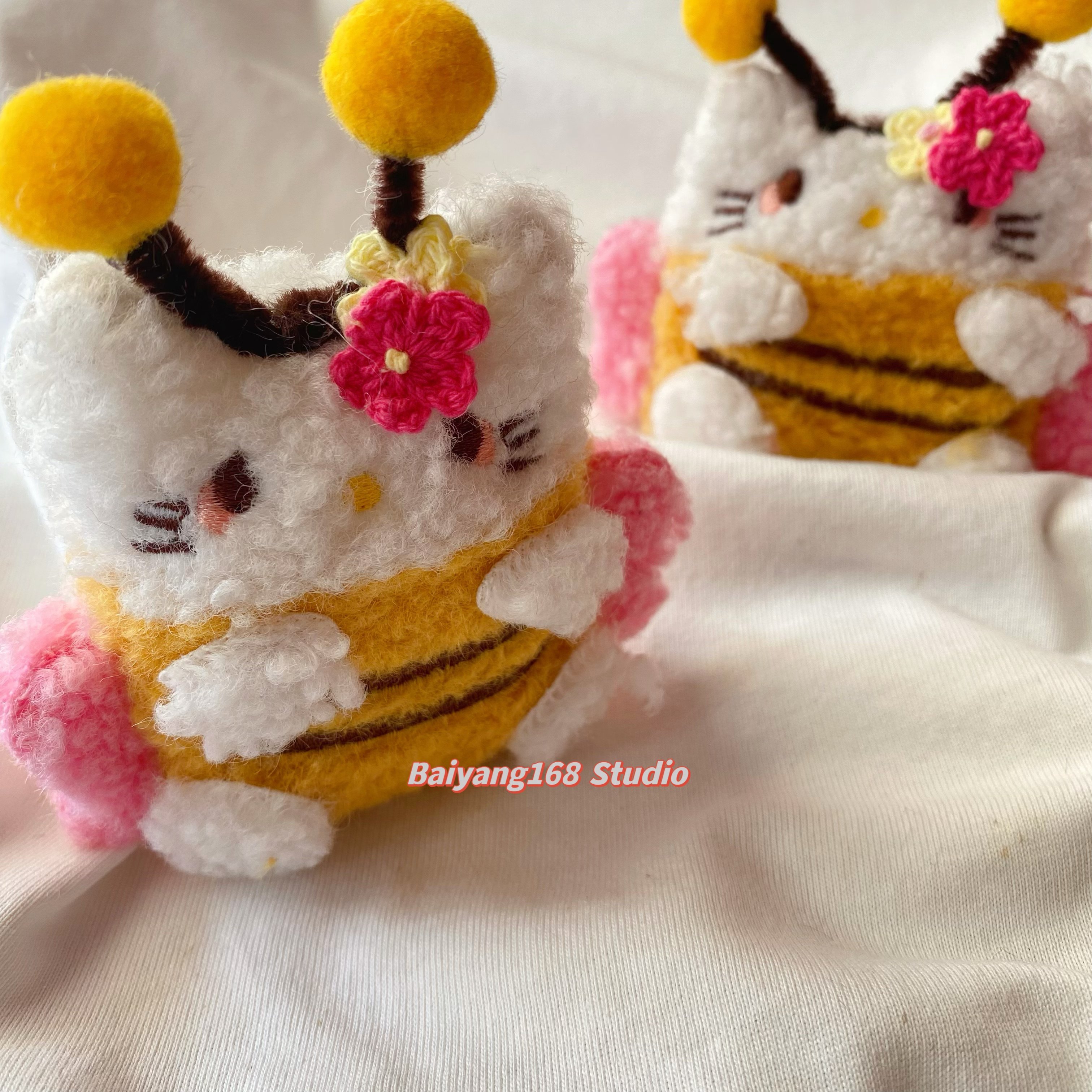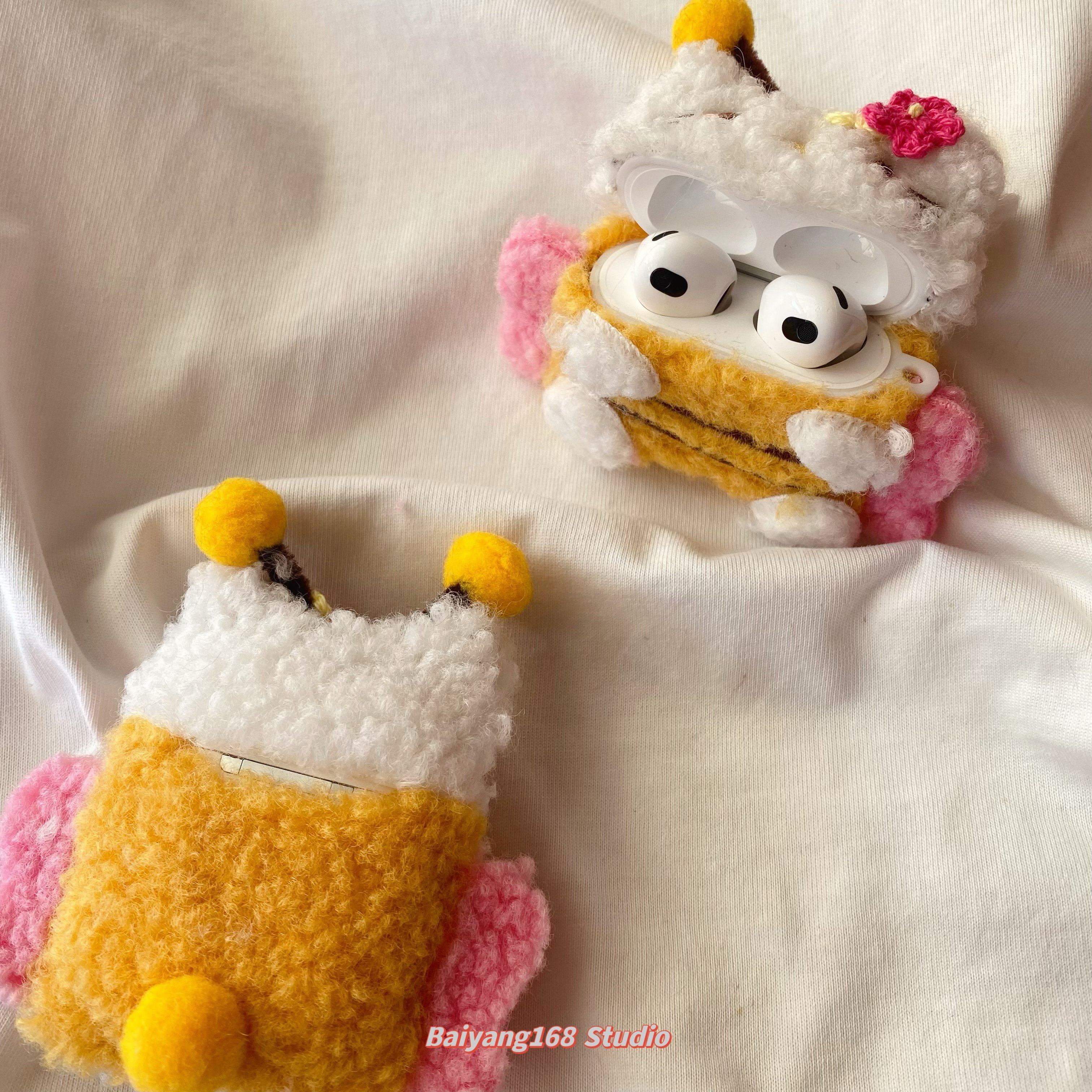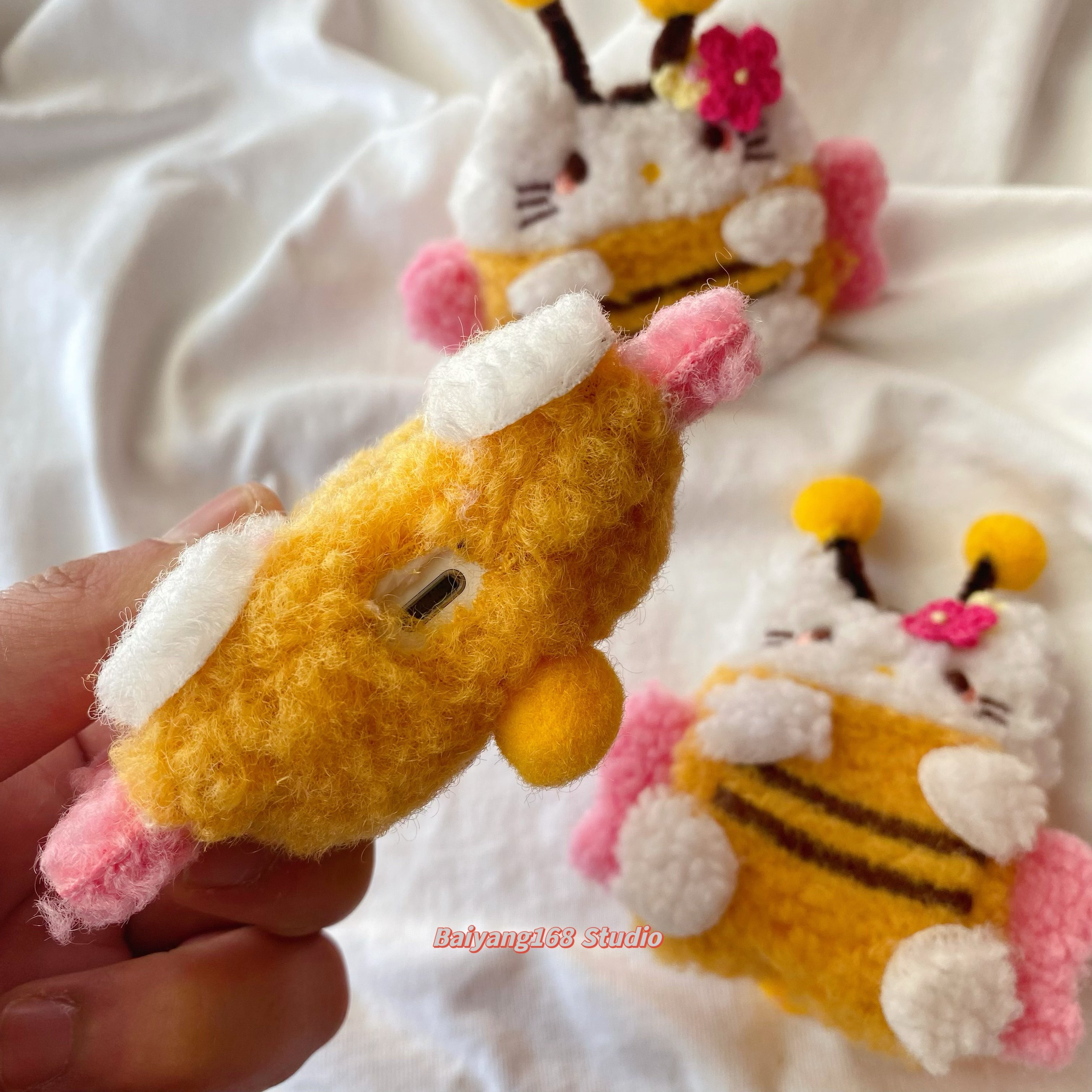 可爱毛绒蜜蜂kitty猫适用苹果耳机保护套airpodspro2无线蓝牙耳机壳三代airpod盒二代ipod耳机套airpods3软壳