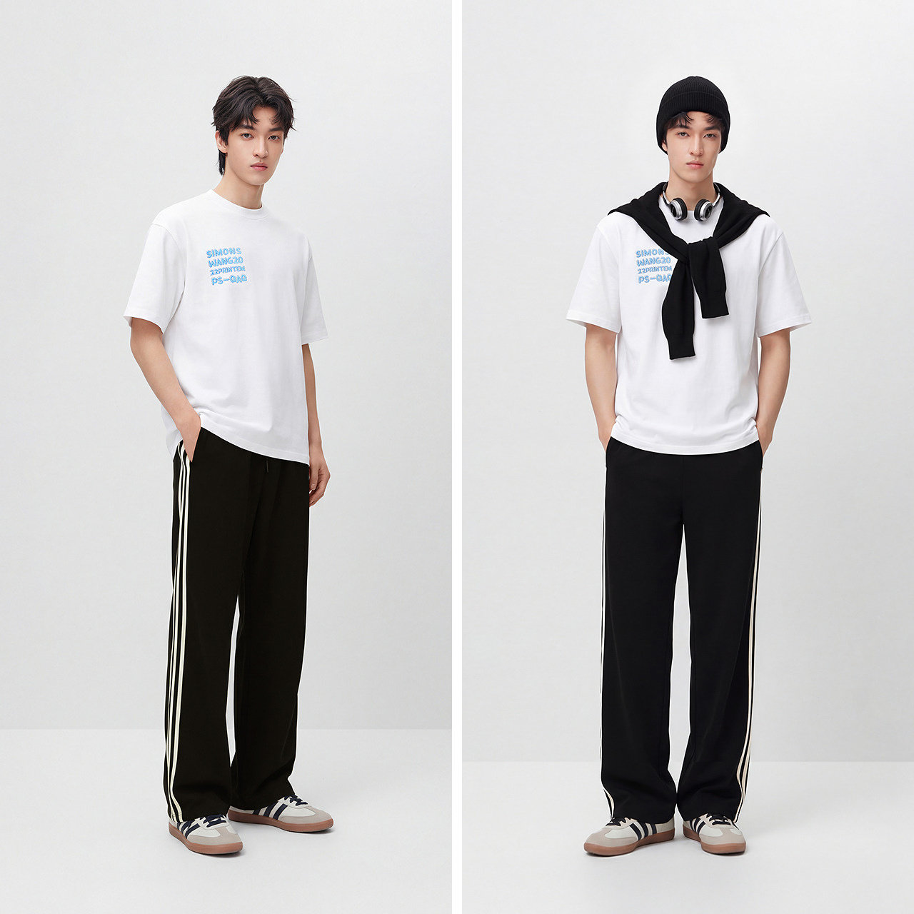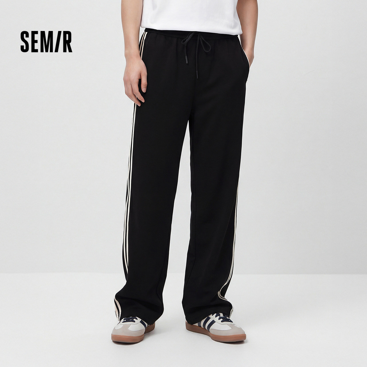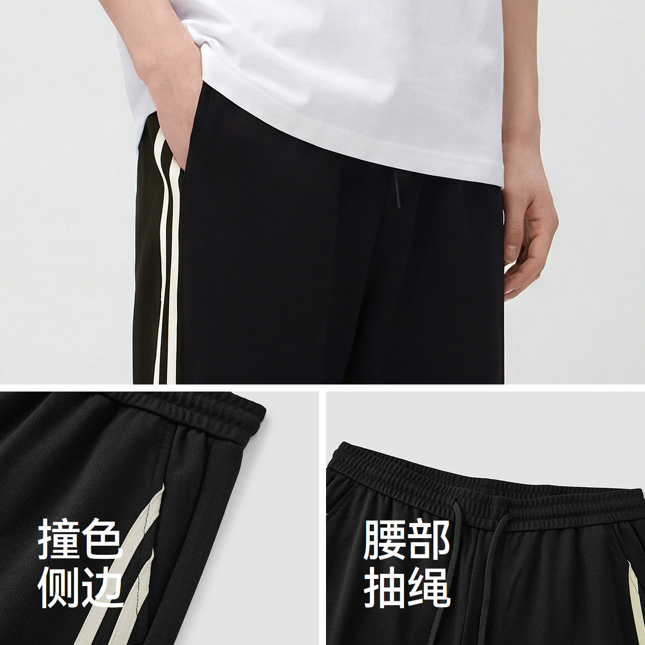 森马休闲裤男夏季复古运动风宽松弧形裤时尚侧边撞色抽绳松紧长裤