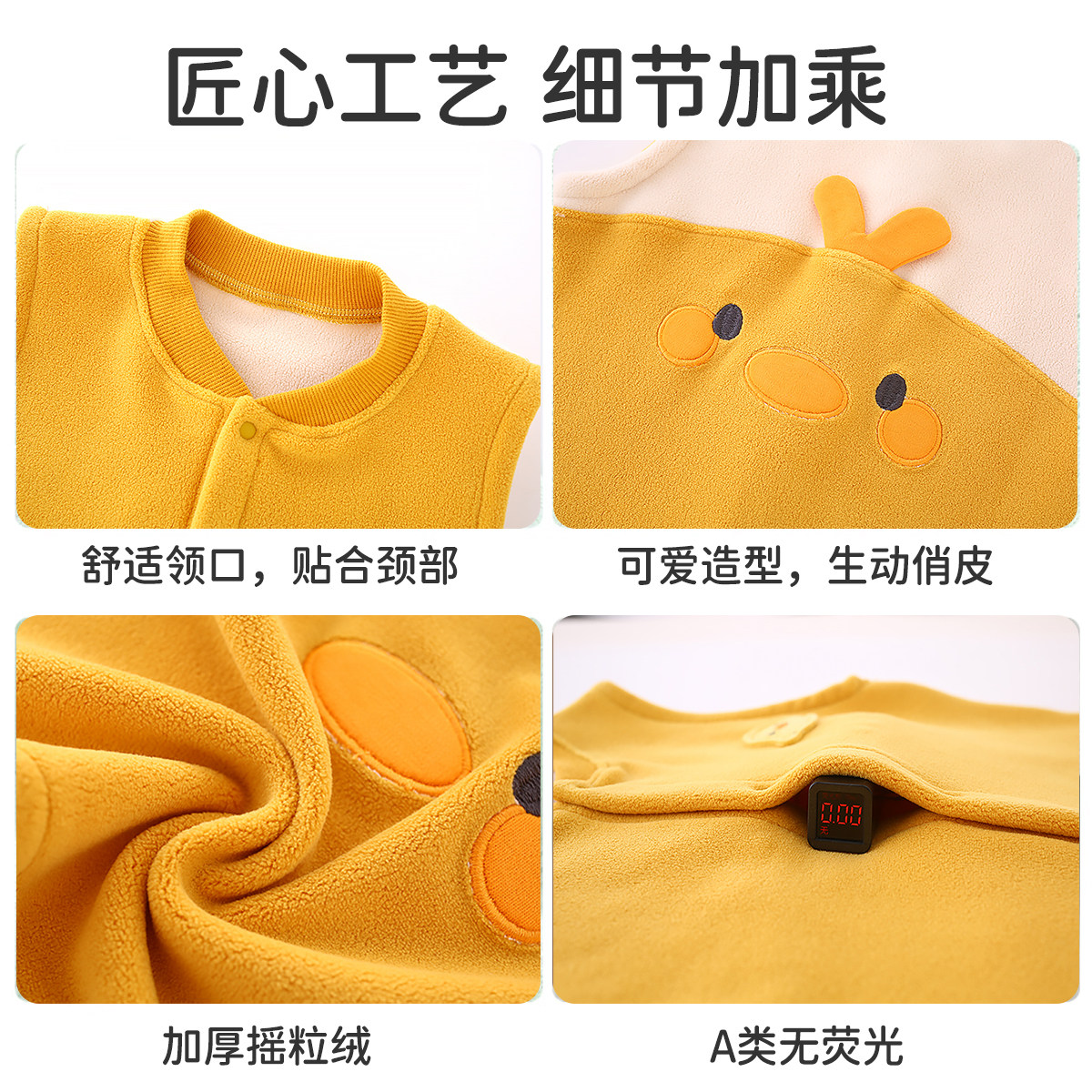 小猪大卫男女宝宝贴身马甲可爱造型恐龙狐狸颗粒绒磨毛马夹1-3岁