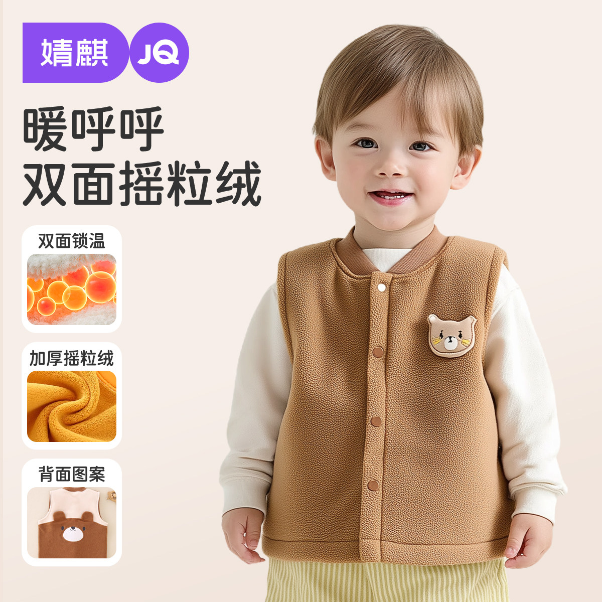 婧麒宝宝马甲儿童摇粒绒背心秋冬外穿保暖加绒小马夹婴儿加厚秋装
