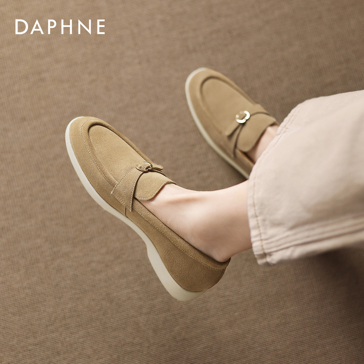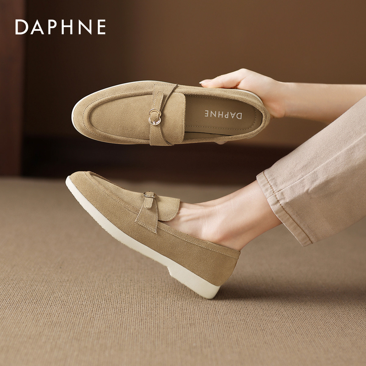达芙妮老钱风乐福鞋女2026新款真皮豆豆软底单鞋一脚蹬通勤皮鞋子