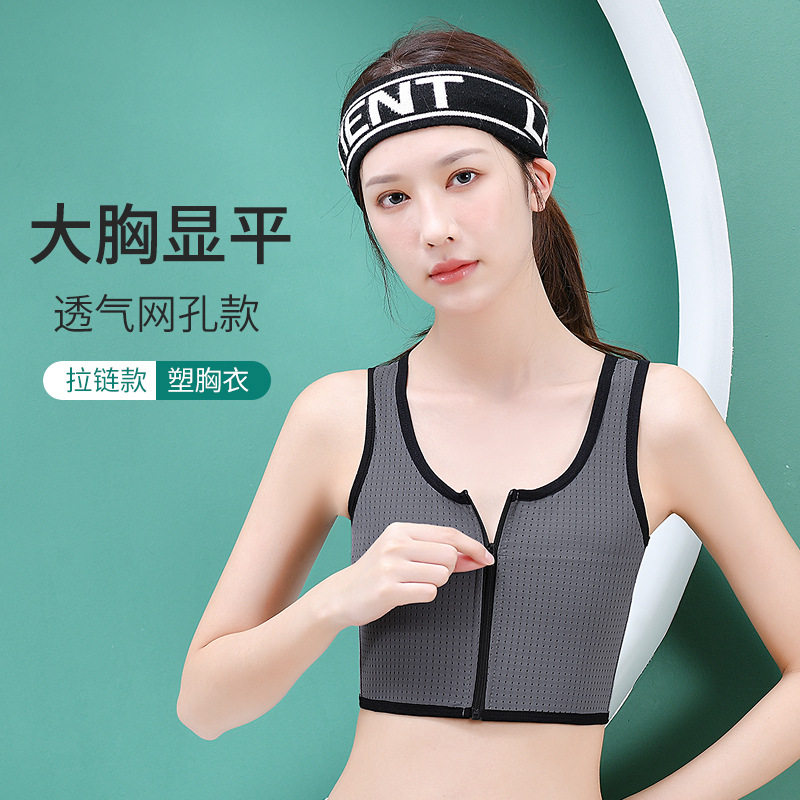 束胸内衣防震运动学生初中生女跑步高强度前拉链大胸显小les超平