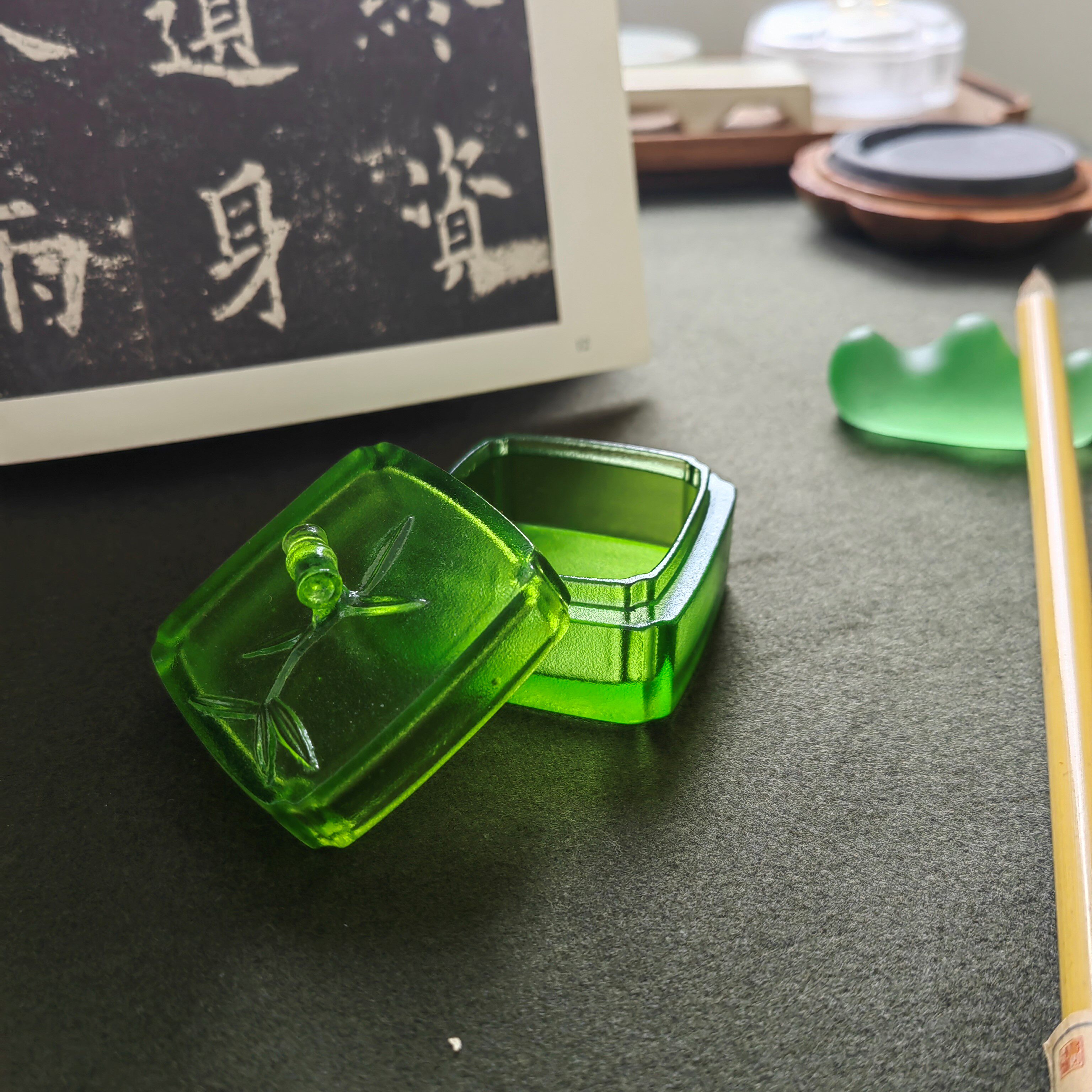 穆轩文房[玲珑点墨]琉璃砚台印泥盒墨盒墨池墨海多用文房四宝