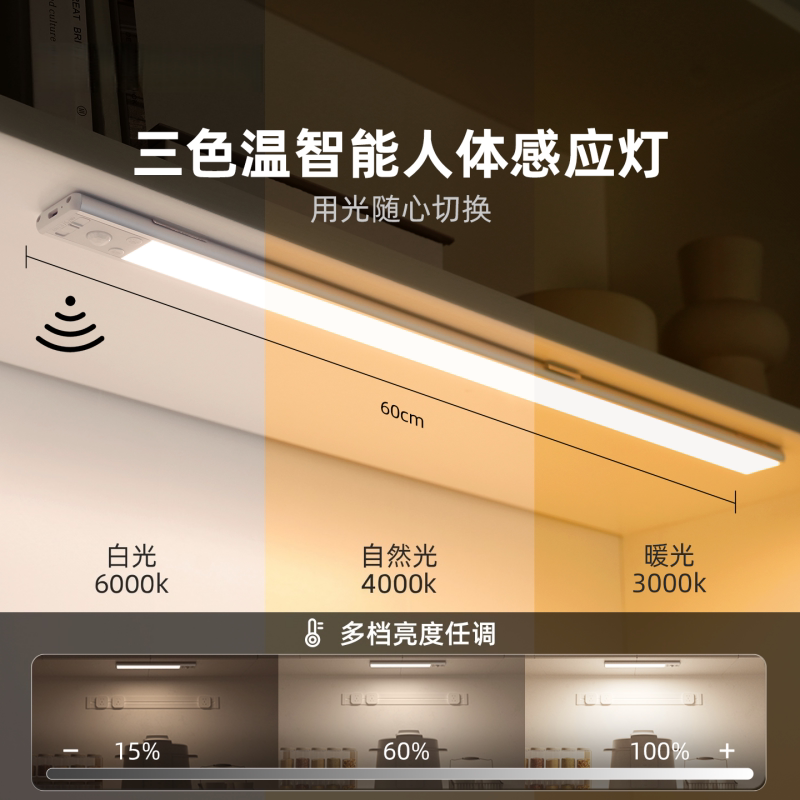 led充电橱柜灯人体感应灯无线磁吸衣柜鞋柜灯展示柜夜间柜子入户