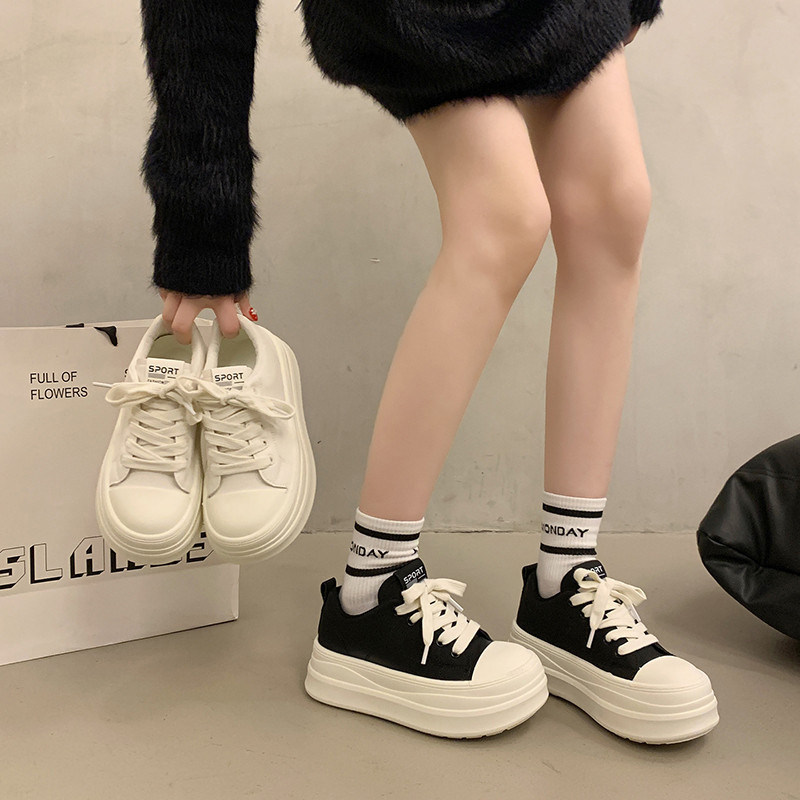 【明星同款】Wander around春秋款黑色厚底增高休闲板鞋男女同款