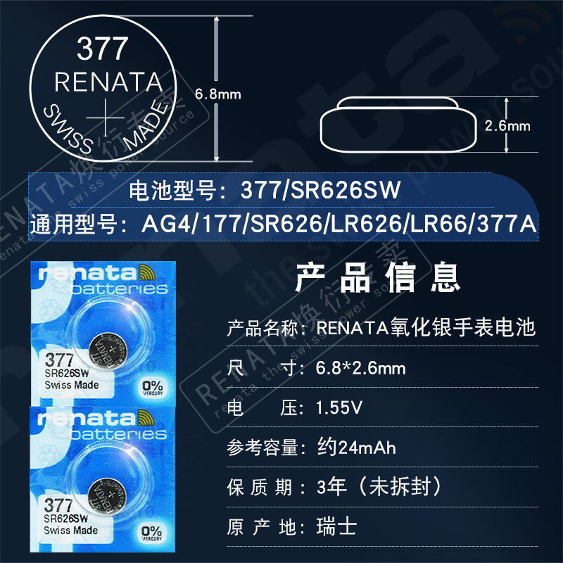 Renata瑞士377进口SR626SW手表电池适用迪士尼罗拉玫瑰聚利时JULIUS安妮克莱因ANNE KLEIN小感觉DKNY纽扣电子