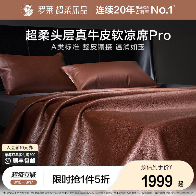 罗莱家纺26新品A类超柔头层牛皮席pro凉席夏天真皮席子轻奢软席