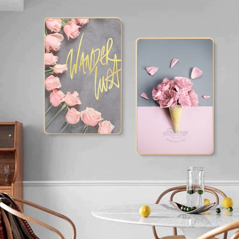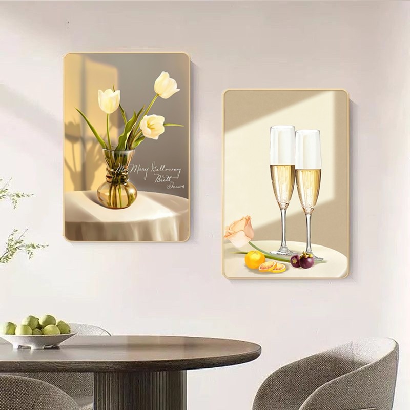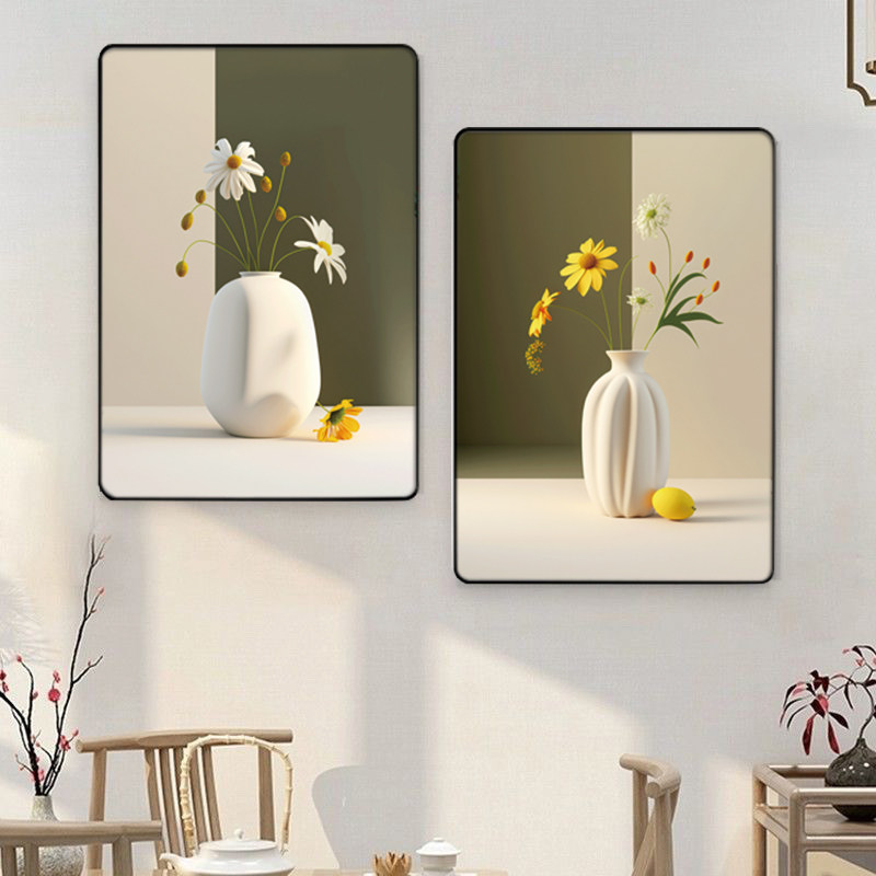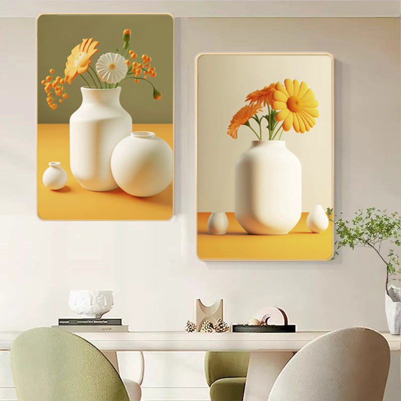 新款简约餐厅装饰画轻奢小清新花瓶餐厅挂画客厅桌壁画两联墙画