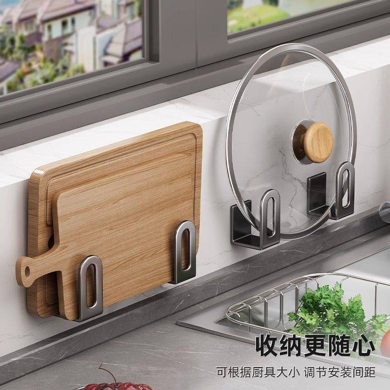 吸盘多层锅盖架厨房壁挂式砧板架带挂钩多功能沥水案板收纳置物架