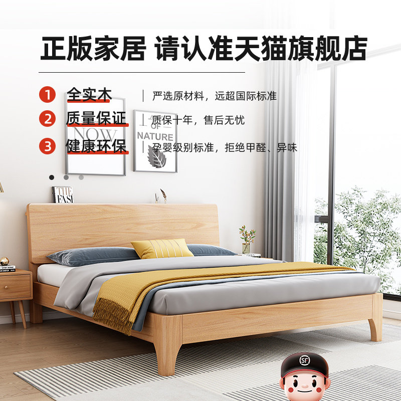 现代简约实木床1.8米主卧双人床1.5M单人经济型高箱储物大床