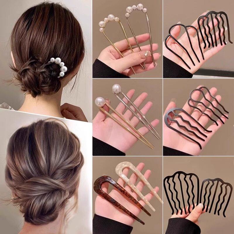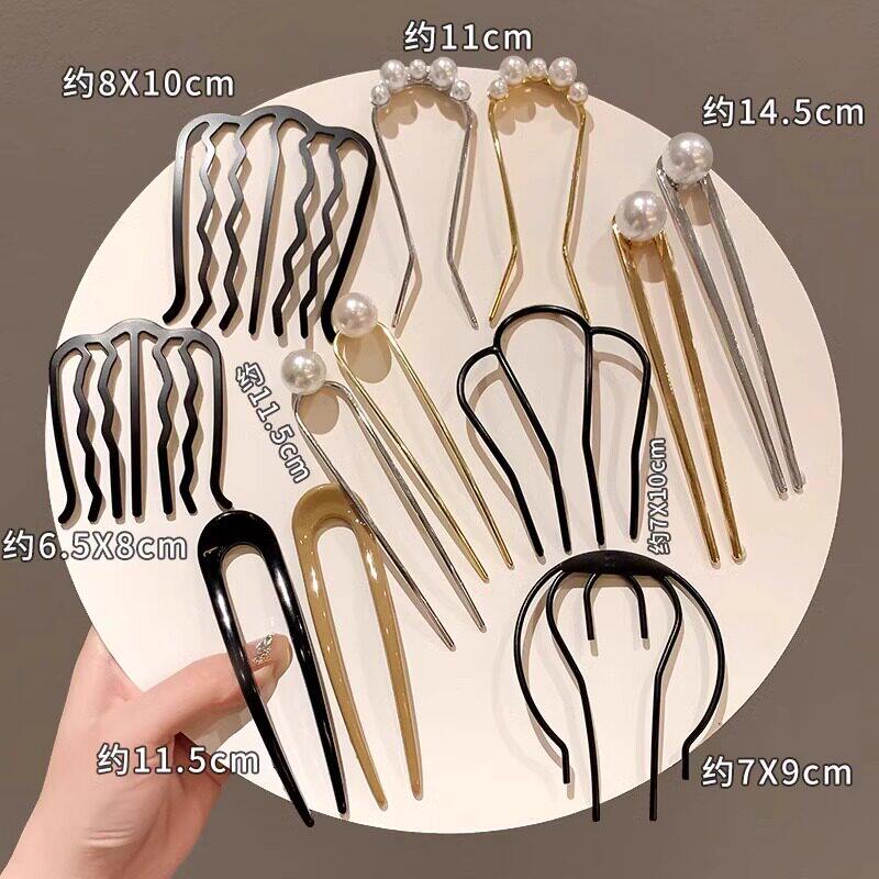 懒人盘发神器丸子头四齿插梳发梳发簪倒插发卡U形发夹造型头饰女