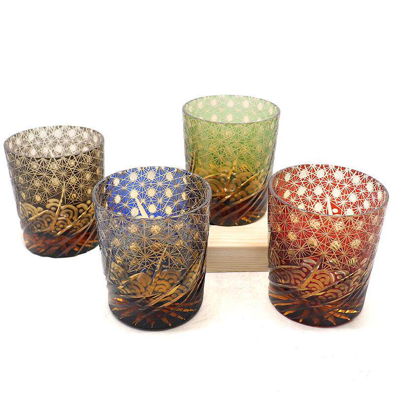 金致威士忌水晶玻璃酒杯江户切子手工雕刻浪涛菊威杯浪人风清酒