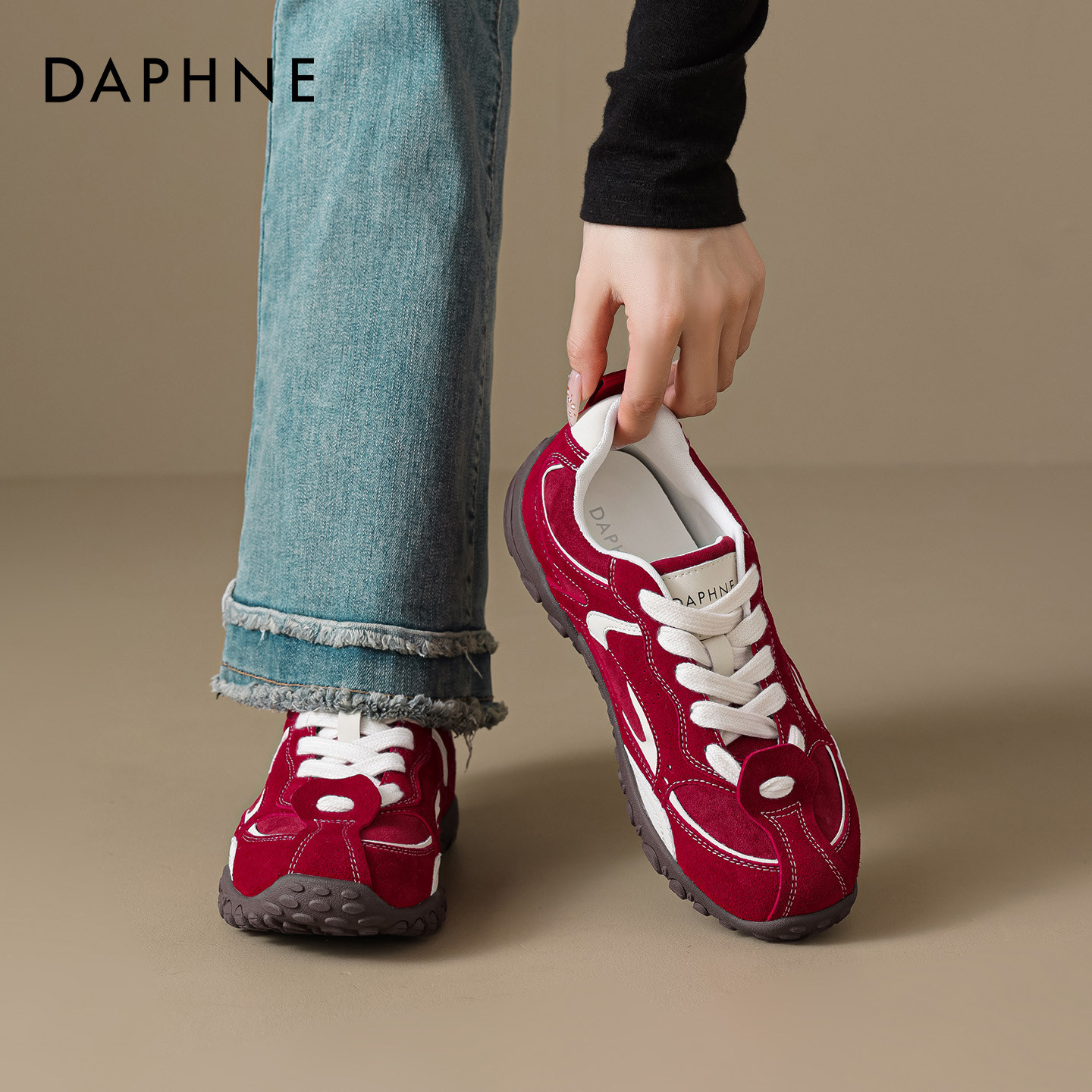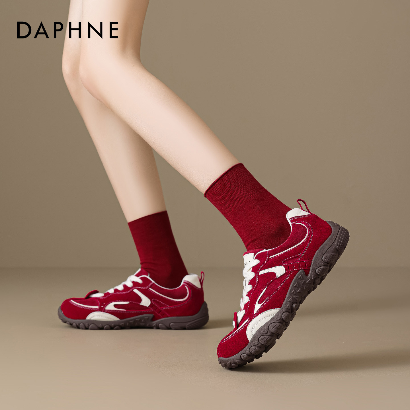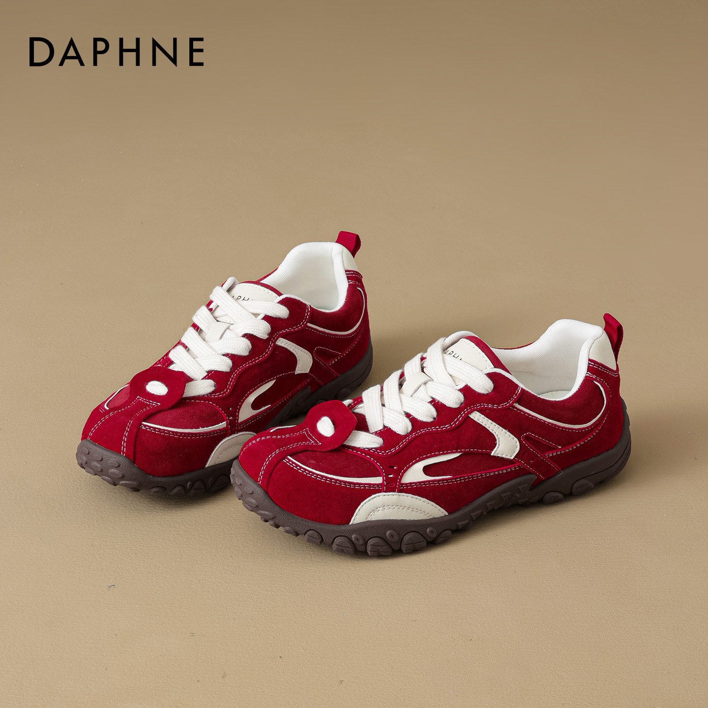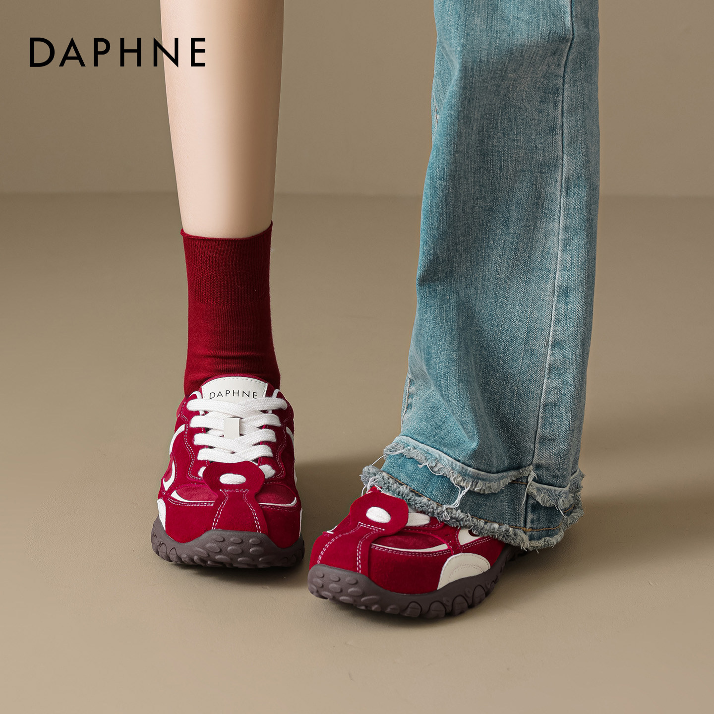 达芙妮红色德训鞋女2026新款春季本命年女鞋增高休闲鞋厚底运动鞋