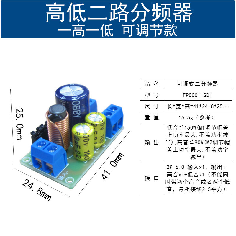 高低音喇叭二分频器模块HIFI发烧级可调节DIY音箱音响二路分音板