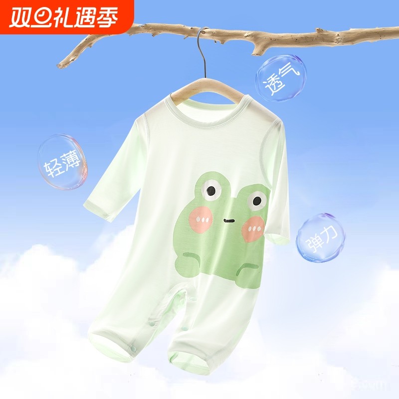 婴儿长袖连体衣夏季薄款优可丝空调服卡通哈衣宝宝无骨透气爬服
