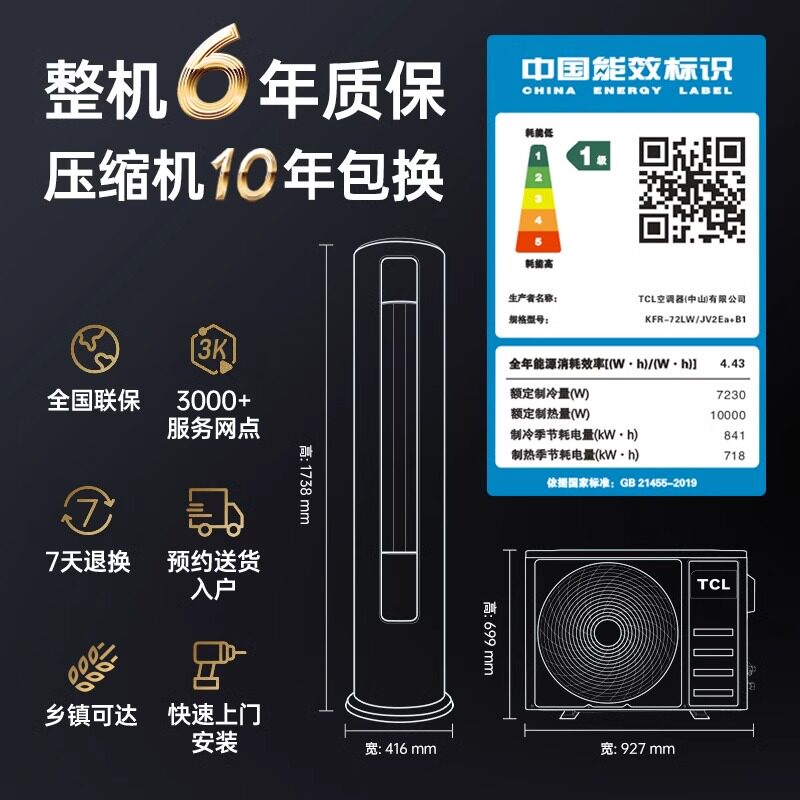 tcl空调家用立式柜机3匹2p客厅落地变频冷暖5P官方旗舰一级能效挂