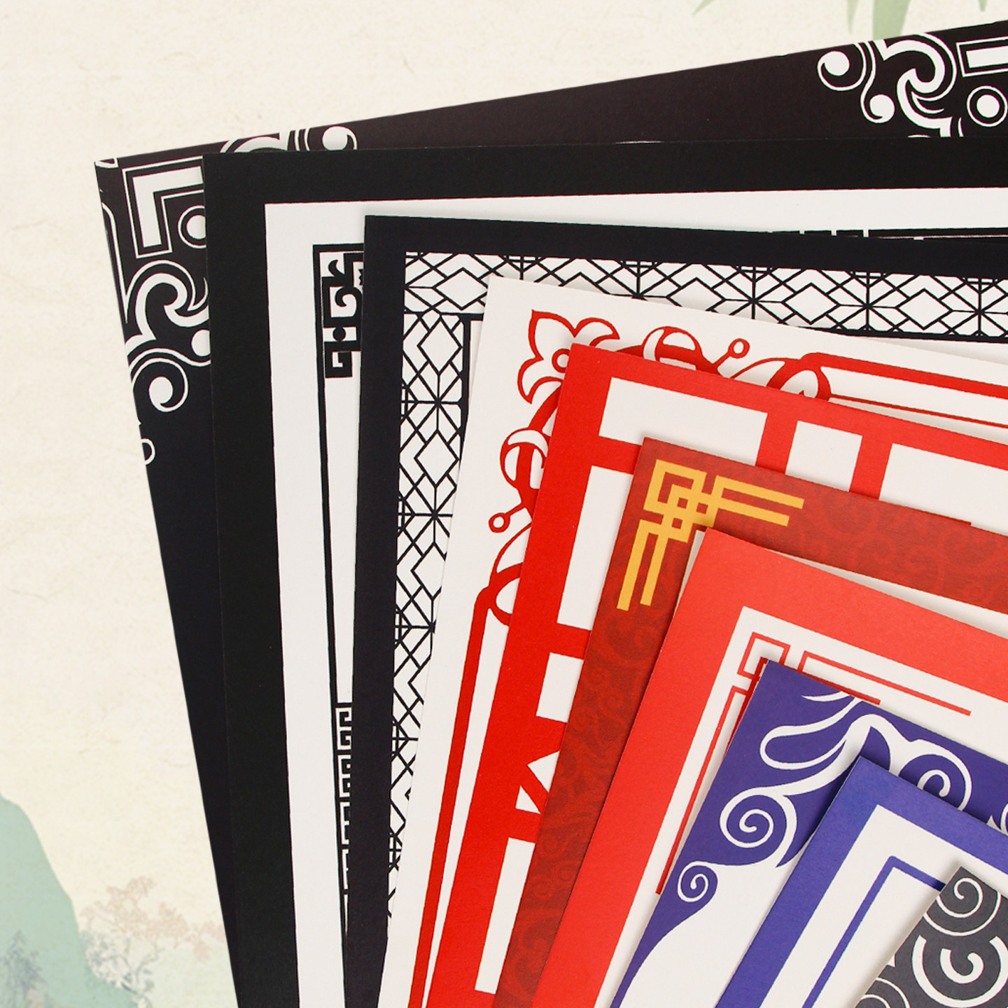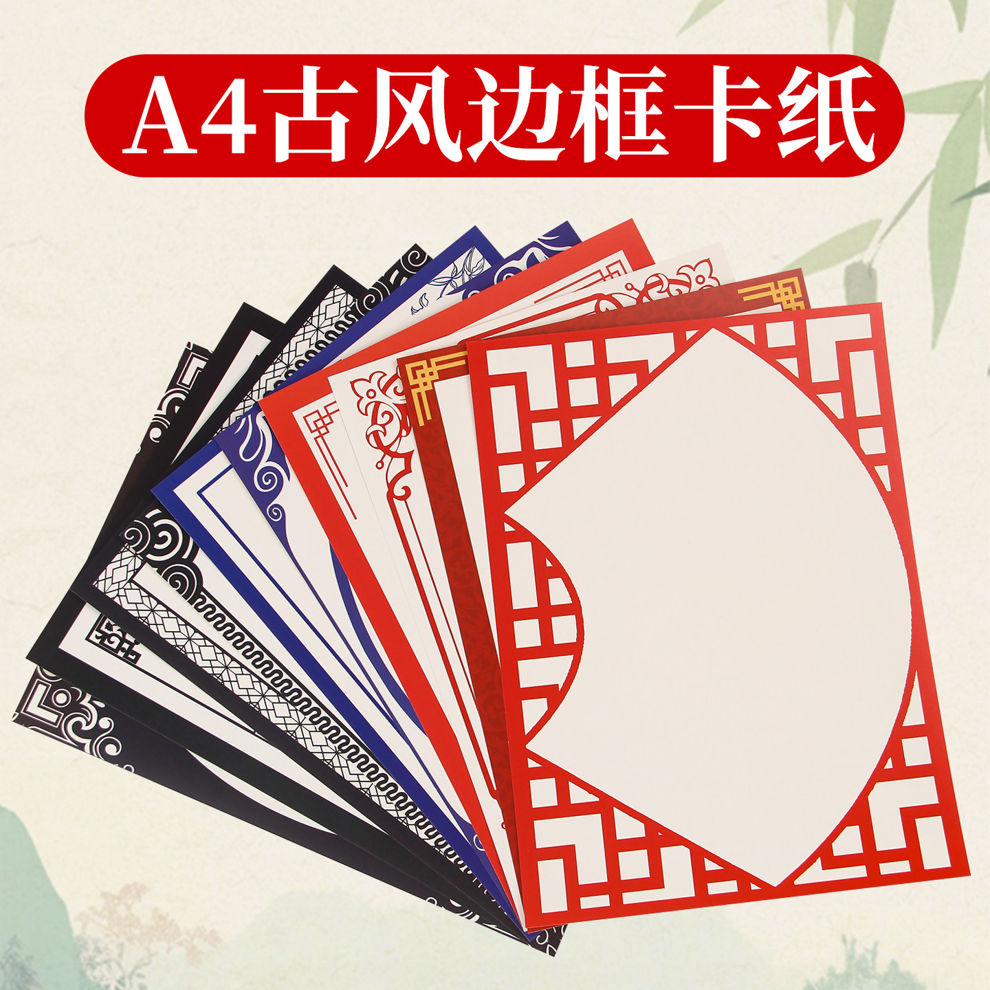 彩色卡纸古风卡纸A4边框硬卡纸中国风花边纸铅笔水粉画纸学生手绘画纸厚卡纸马克笔针管笔彩铅画画纸a4素描纸
