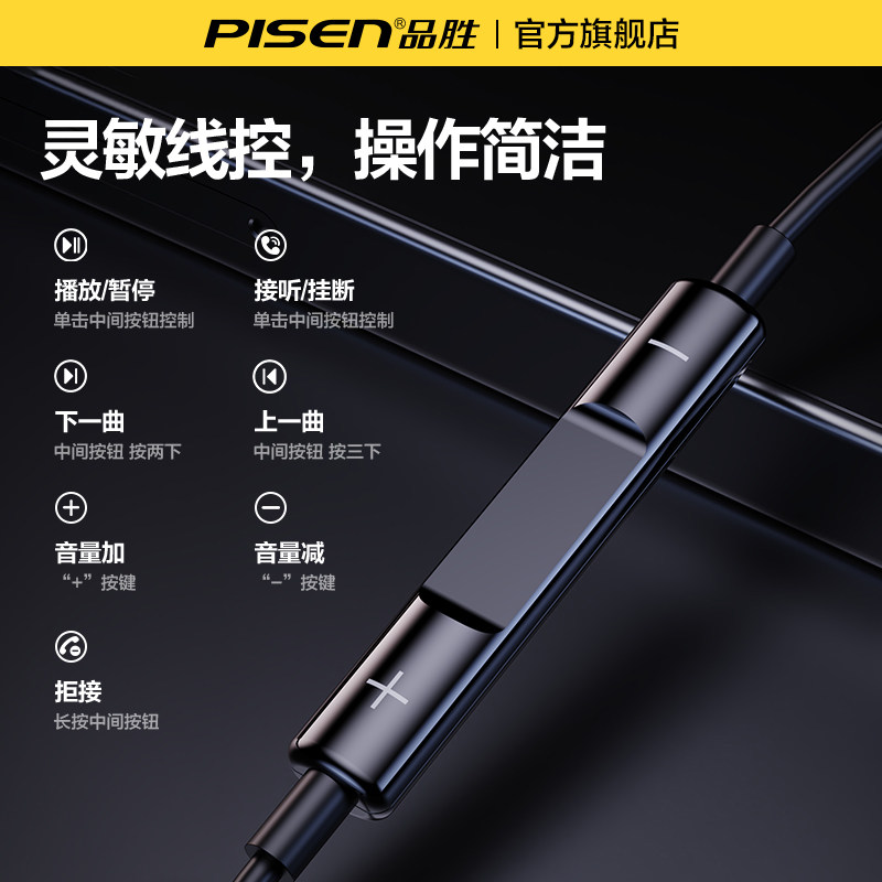 品胜有线耳机圆孔3.5mm带麦typec适用电脑小米华为iPhone16苹果17