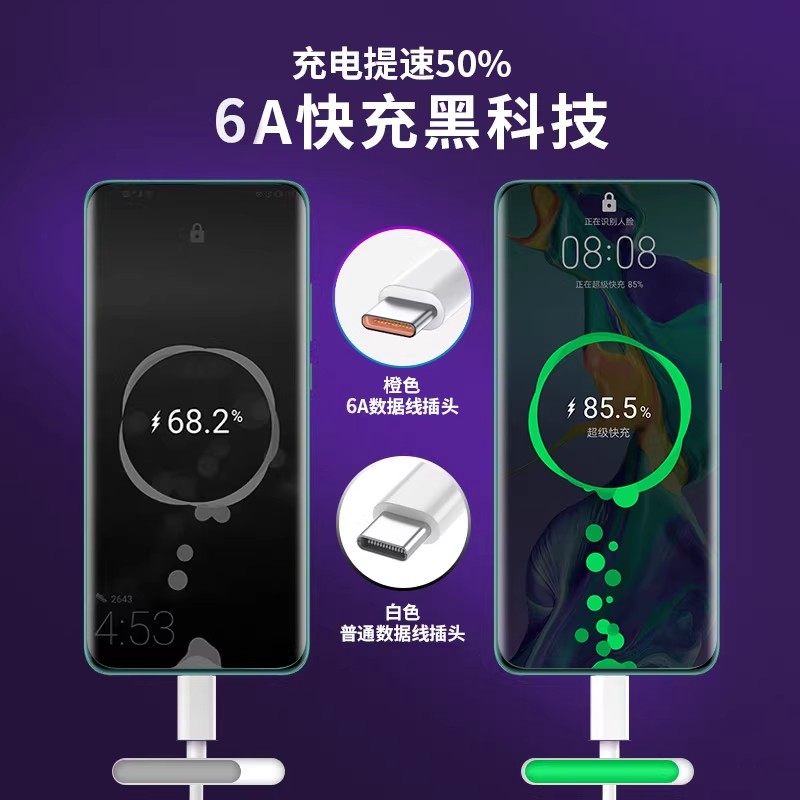 超级快充三合一数据线通用充电线适用苹果荣耀华为OPPO小米VIVO手机通用车载一拖三数据线透明芯片type-c带灯
