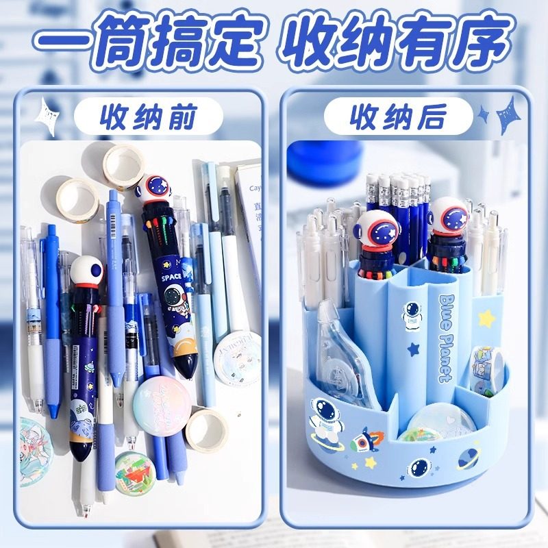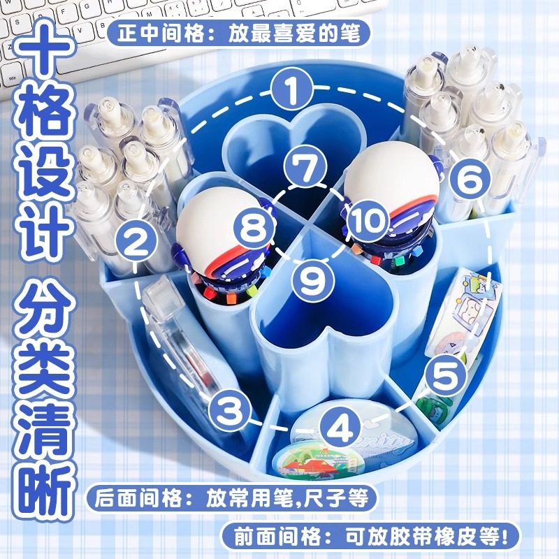 360度旋转笔筒大容量儿童男孩女孩学生7格分类桌面创意铅笔收纳盒