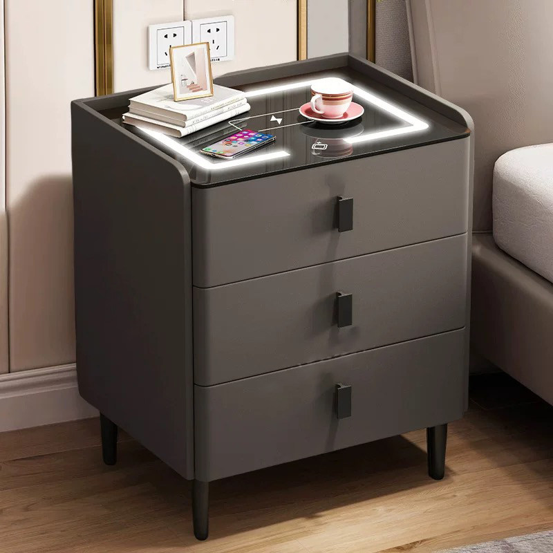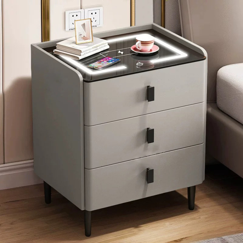 智能床头柜实木现代床边柜家用充电卧室简约风无线轻奢免安装置物