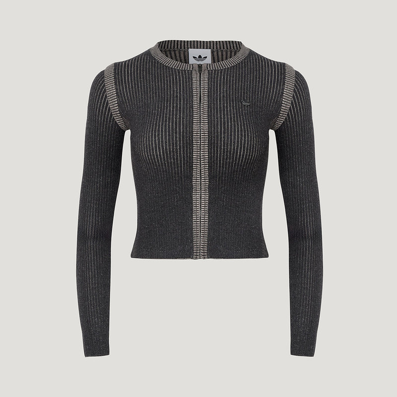 adidas阿迪达斯三叶草高腰短款毛衣夹克2026春女紧身针织衫KR5037