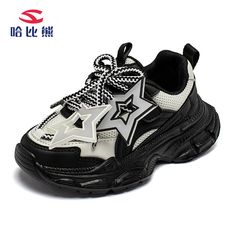 哈比熊童鞋儿童老爹鞋女童运动2025秋冬新款加绒保暖中大童星星潮