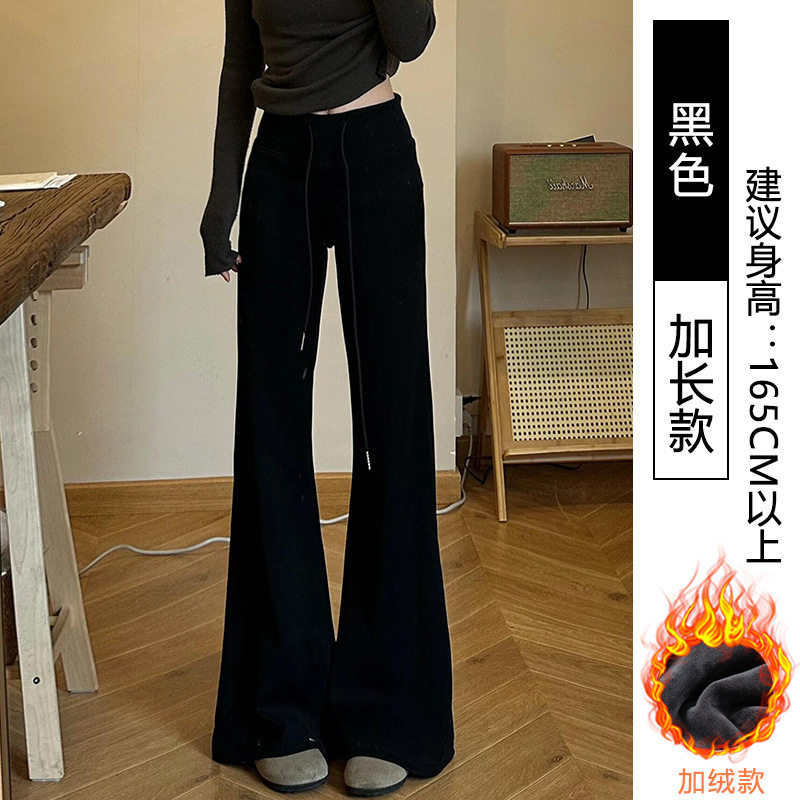 加绒lulu同款微喇裤女2025新款高腰休闲宽松显瘦辣妹运动喇叭裤L