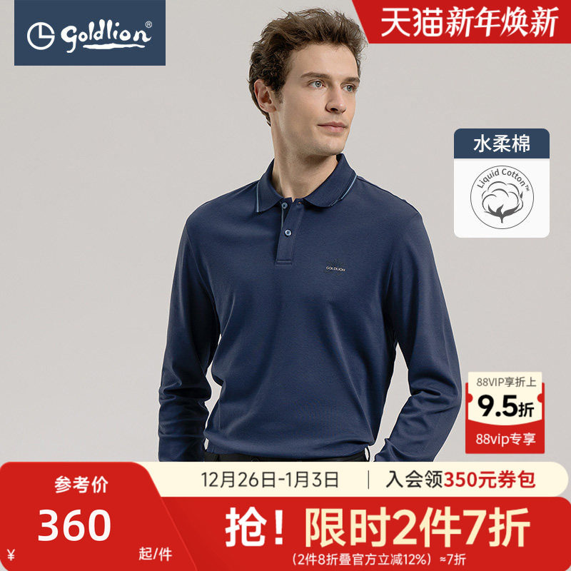 【纯棉】金利来新款男士柔软长袖T恤休闲商务上衣翻领Polo衫男款