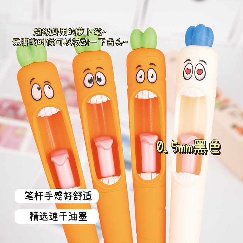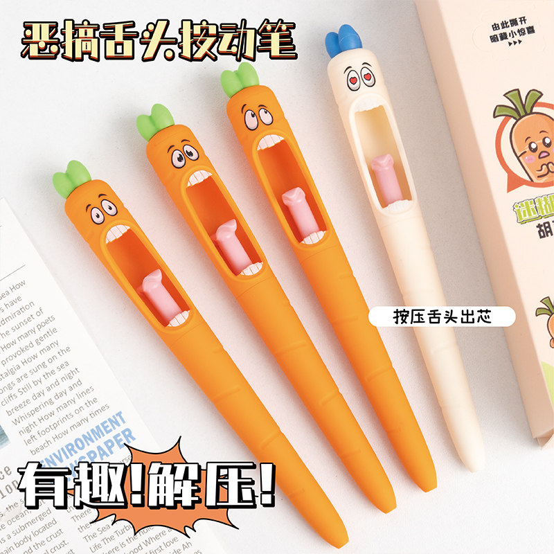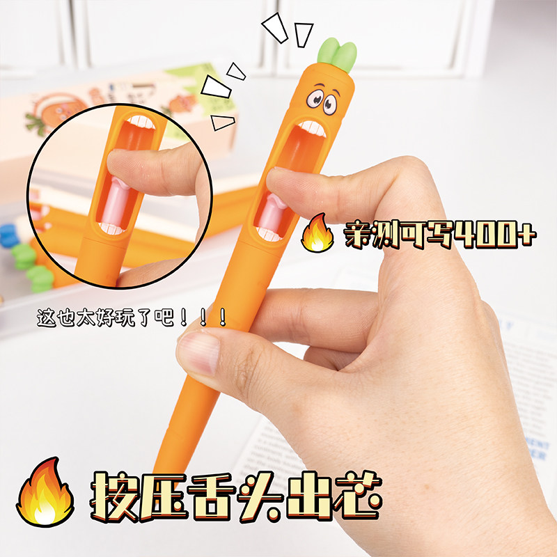 尖叫胡萝卜造型舌头笔解压按动中性笔高颜值可替换笔芯CS笔头签字笔创意解压可爱速干黑色刷题笔按动舌头出芯