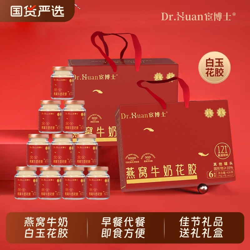 宦博士燕窝牛奶花胶70g*6瓶/盒即食鱼胶早餐送礼礼盒装正品鲜炖