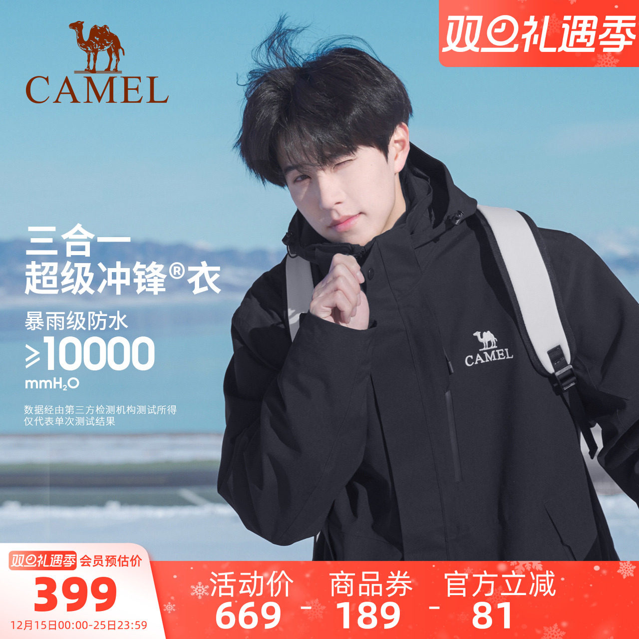 王俊凯同款骆驼蛟龙冲锋衣男女三合一外套秋冬款户外防水登山夹克