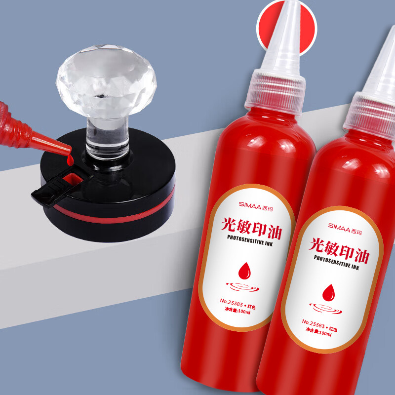 西玛快干光敏印油盖章速干墨水印章加印油 大瓶100ml 印台油墨印泥补充液原子印油红色印泥专用油